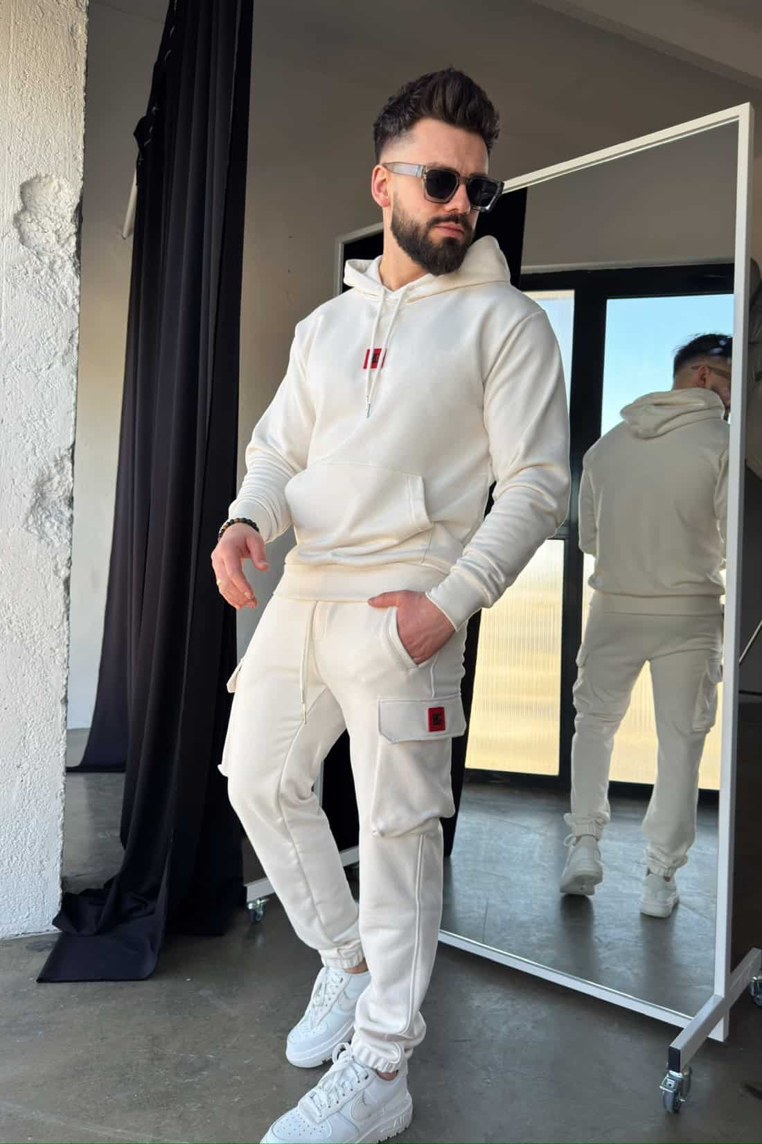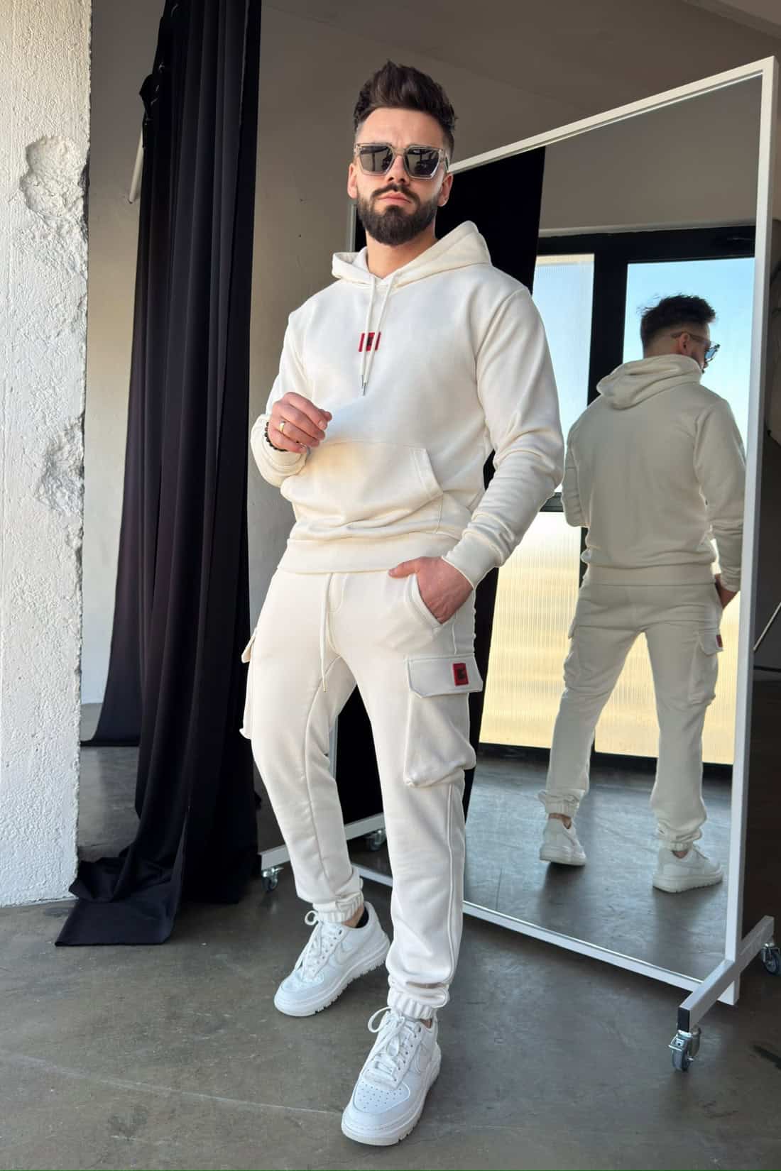 Opis produktu: Spodnie męskie BG PALERMO z wysokiej jakości bawełny nieocieplanej. Klasyczne bojówki dresowe z żelową aplikacją z logo marki w kolorze czerwonym na nogawce. Kieszenie w boku oraz gumka ze sznurkiem w pasie. Spodnie wykończone gumkami.