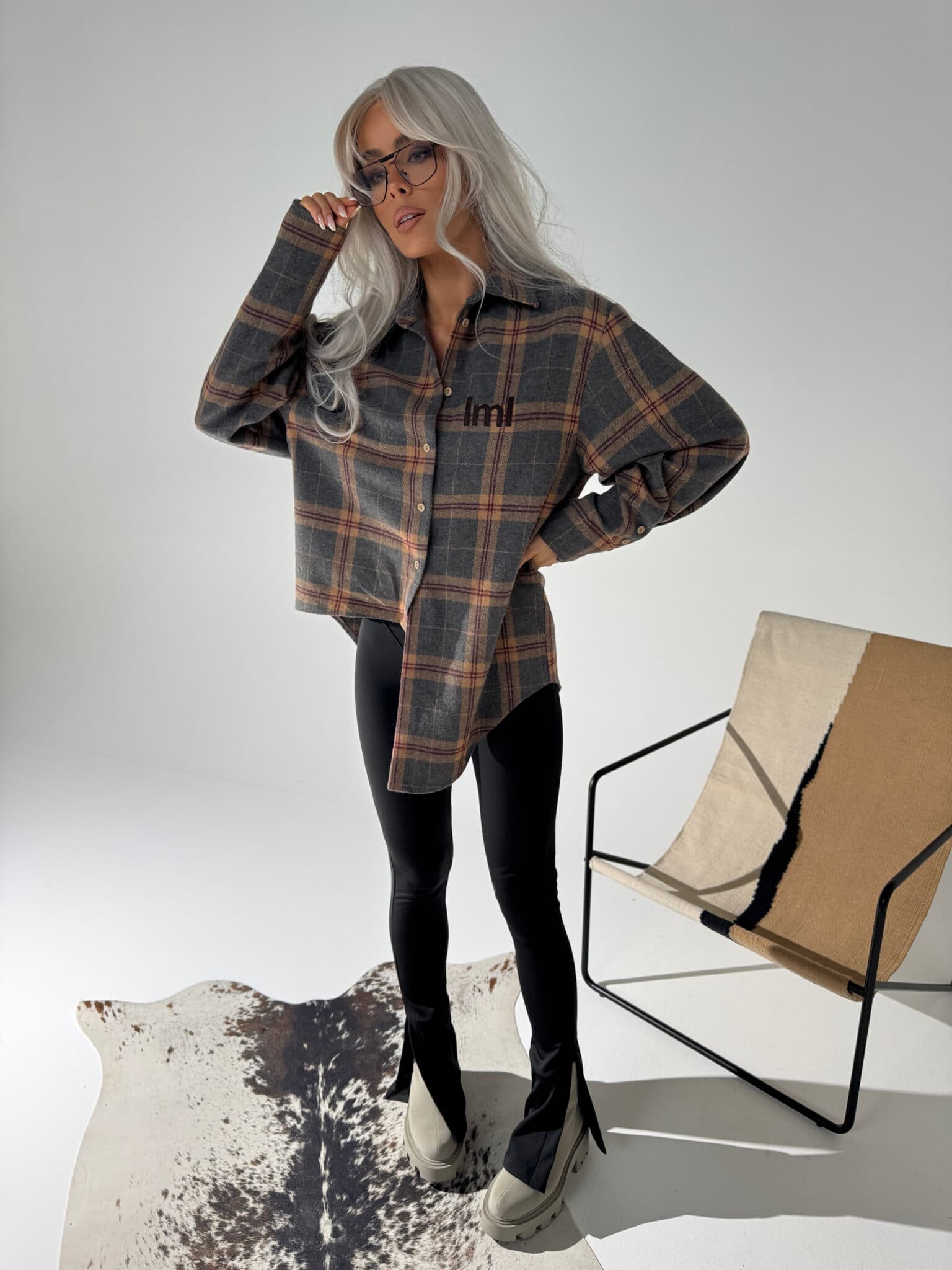 Spodnie z grubej lycry, które robią robotę od pasa po same kostki. Wysoki stan i charakterystyczne cięcie z przodu pięknie podkreślają talię, a materiał wygładza sylwetkę bez uczucia ścisku. Nogawki z rozcięciem z przodu dają efekt wydłużenia nóg i fajnie układają się na bucie. Idealne do ciężkich botków, sneakersów albo na sportowo – to model, który łączy komfort z wyraźnym stylem.Skład: 50% poliester 36% rayon 14% spandex