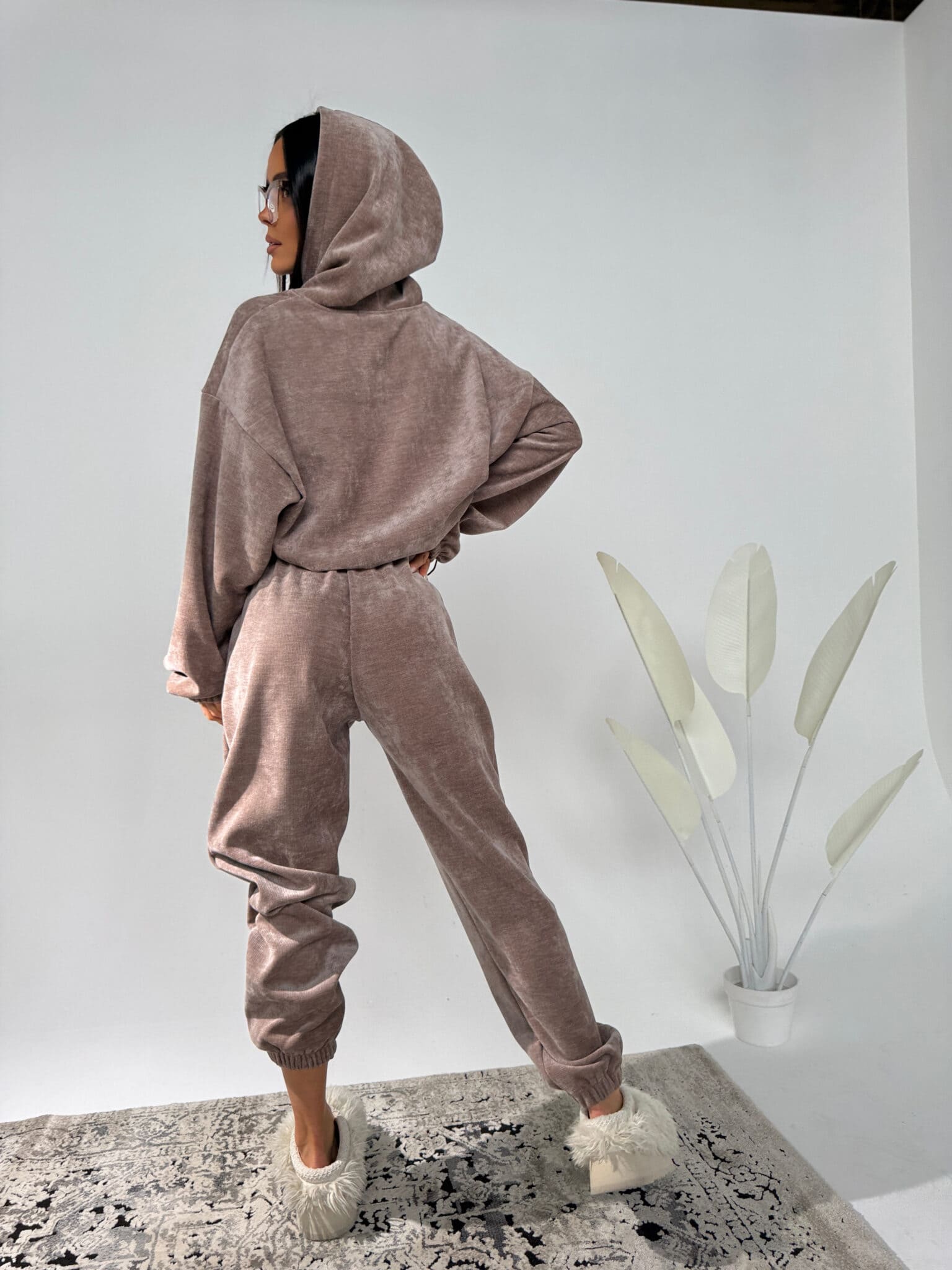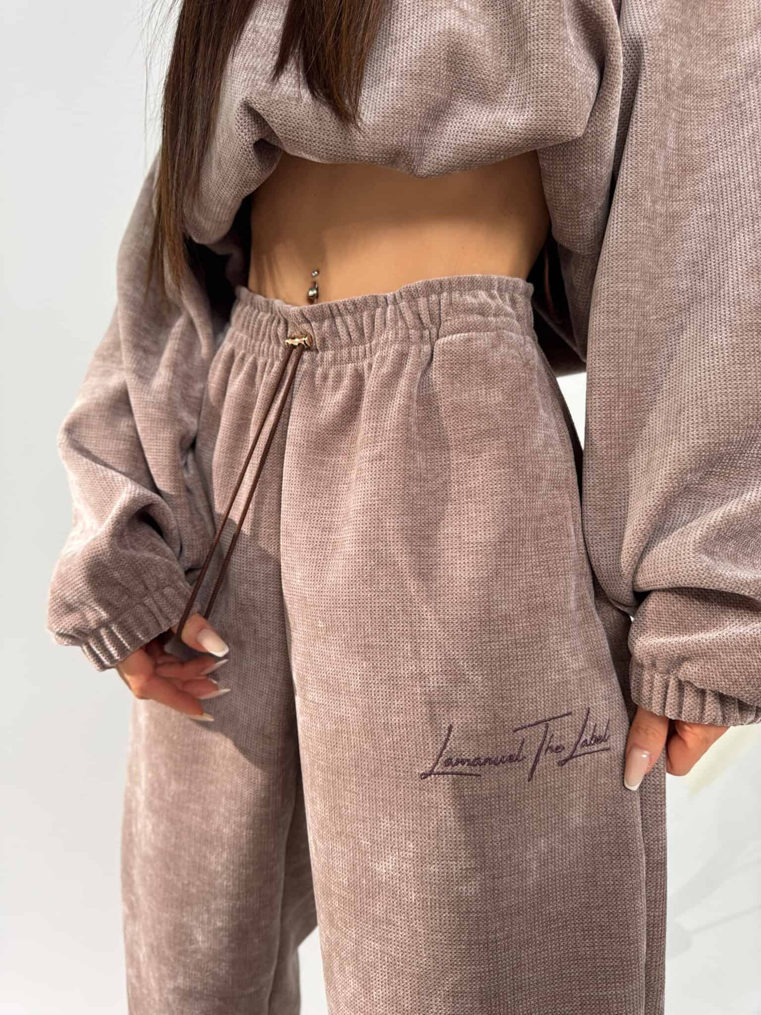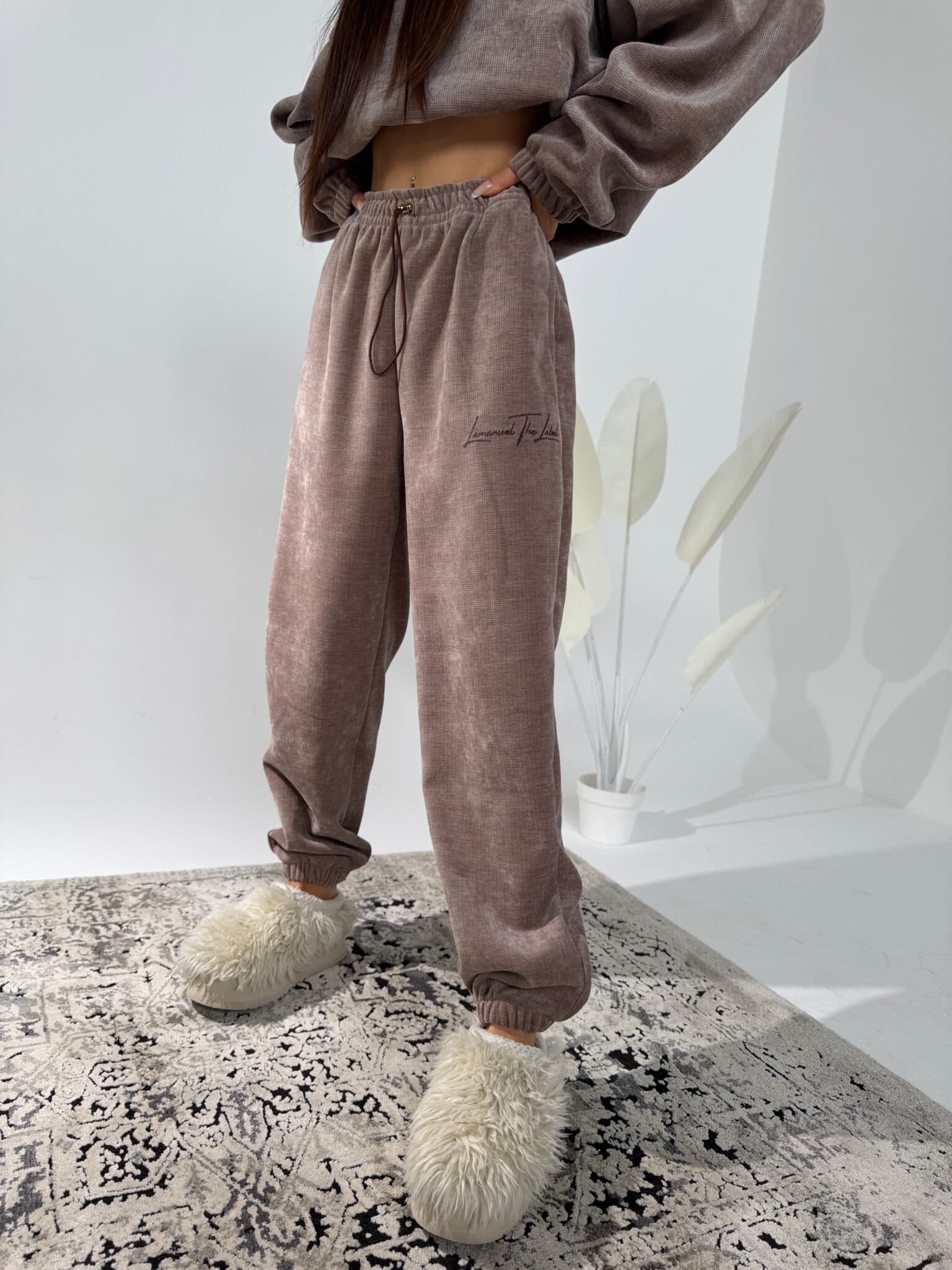 Czujesz się w nich, jakbyś właśnie wróciła z górskiej chaty. Welurowy materiał otula ciało, gumka w pasie i luźna nogawka dają pełen luz, a ściągacze trzymają formę. To spodnie na zimowy reset – do bluzy, do herbaty, do grubych skarpetek. Ale niech Cię nie zmyli ten chill – wyglądają naprawdę dobrze.Skład: 95% poliester 5% spandex