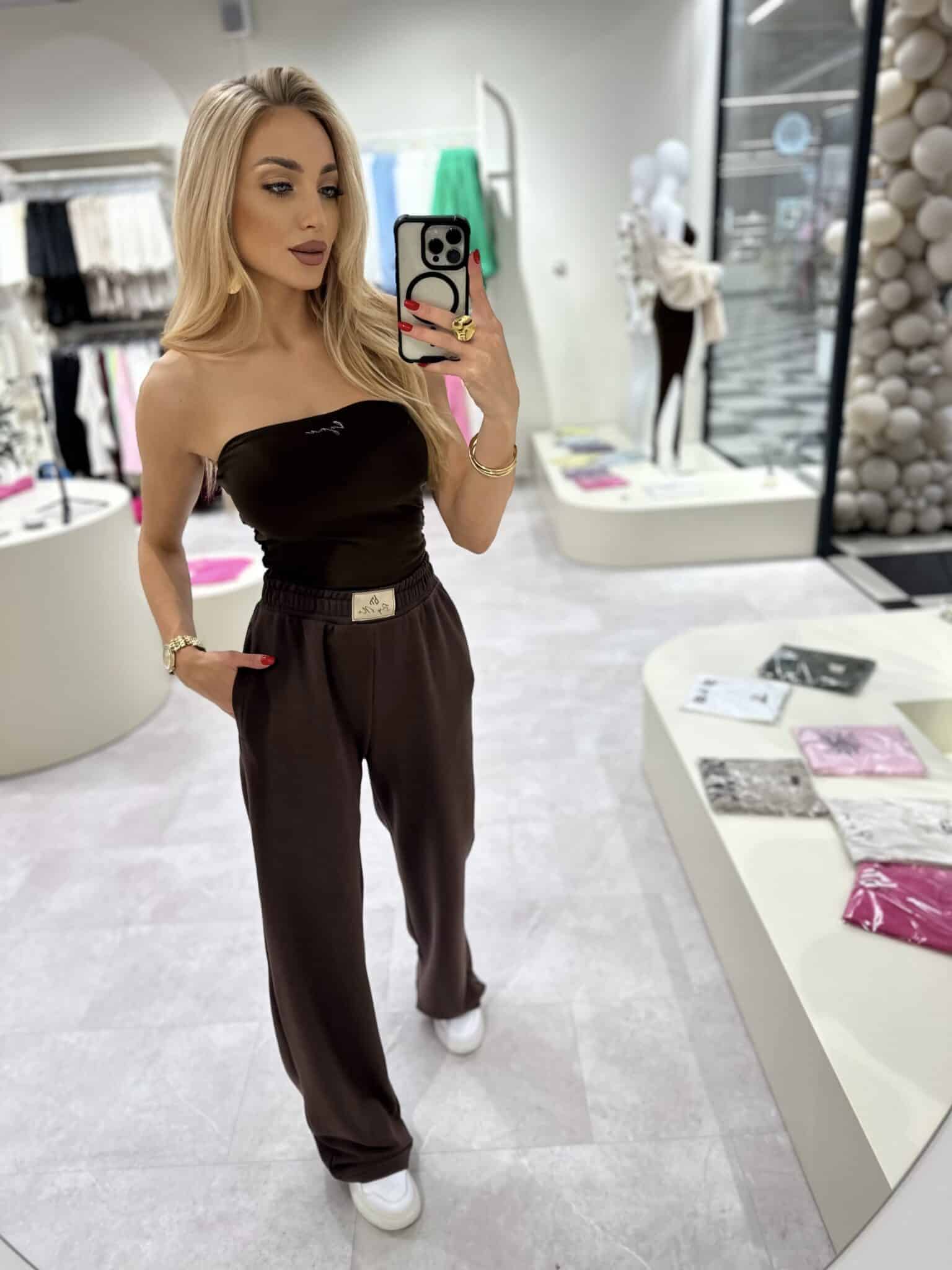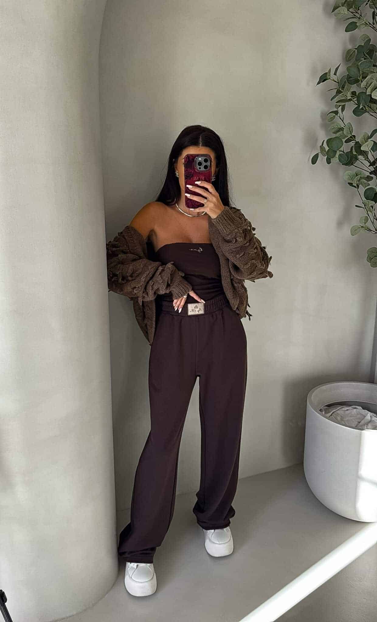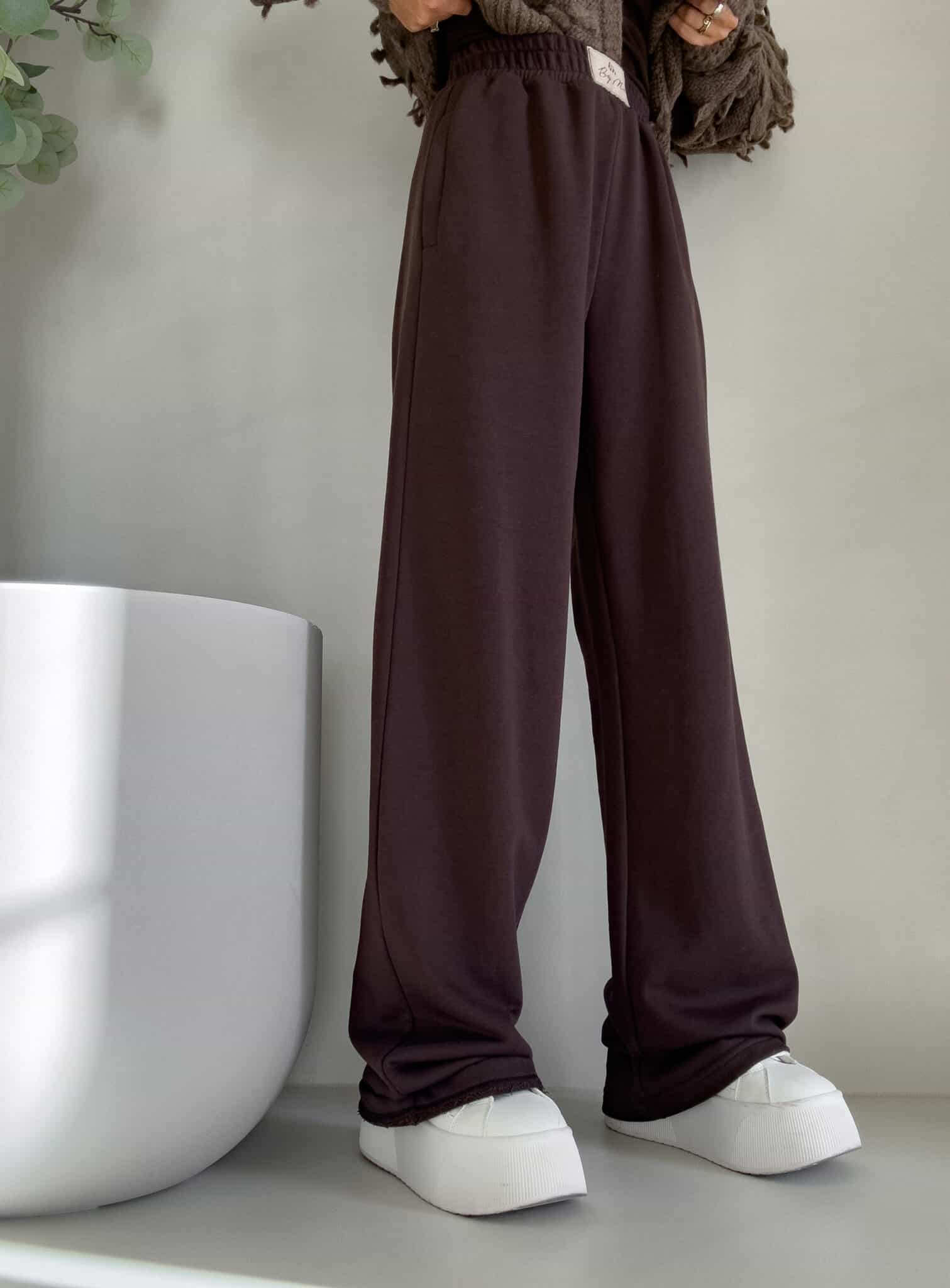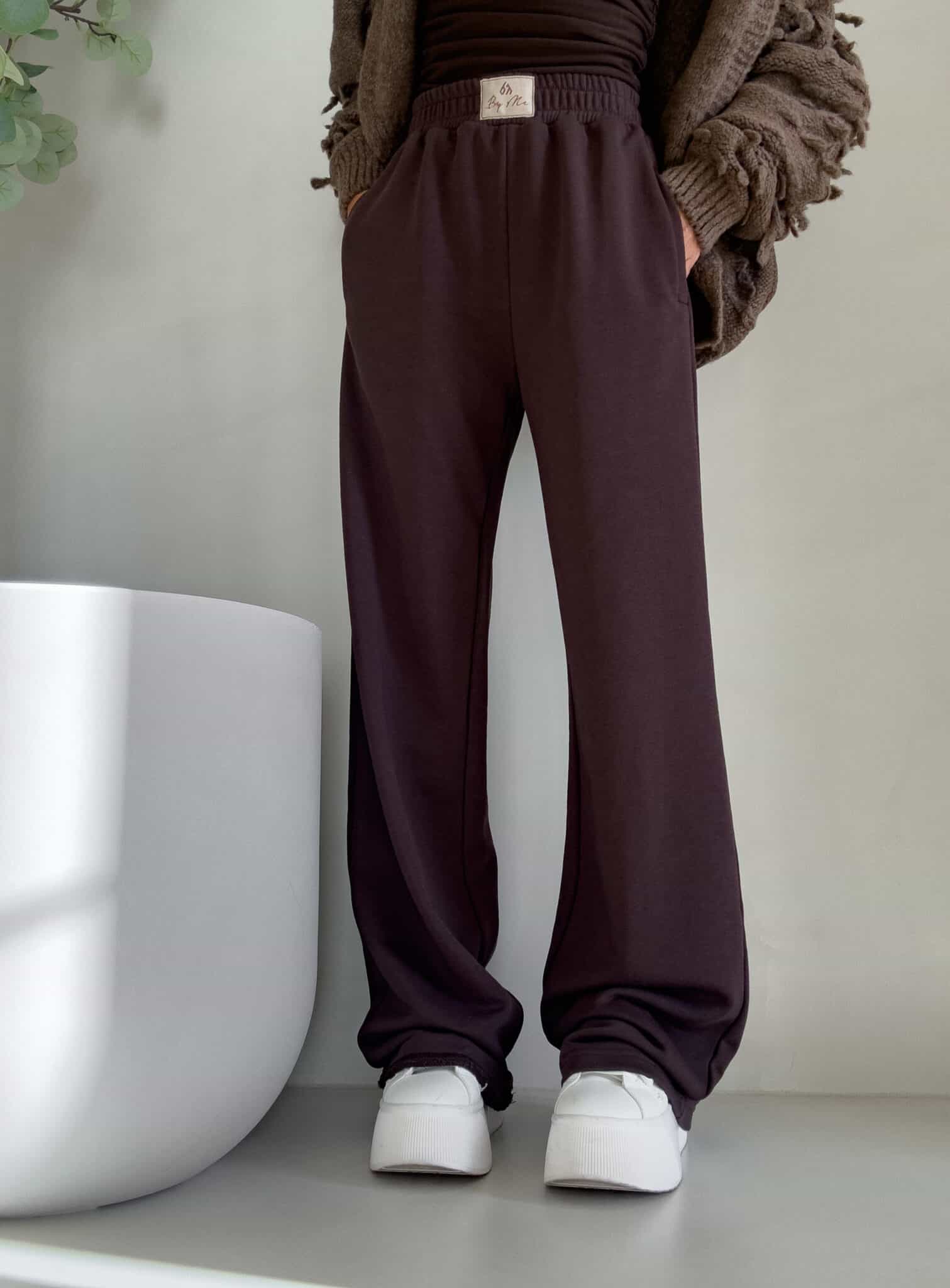 Luźne spodnie dresowe z szerokimi nogawkami to idealne połączenie komfortu i swobodnego stylu. Wykonane z miękkiego materiału, mają prosty krój i szerokie nogawki, które zapewniają maksymalną wygodę i pełną swobodę ruchów. W pasie znajduje się elastyczna gumka, dzięki której spodnie dopasowują się do sylwetki, nie uciskając. Dodatkowym detalem jest subtelna metka z napisem „By Me” przyszyta centralnie na gumce, podkreślająca unikatowy charakter produktu.