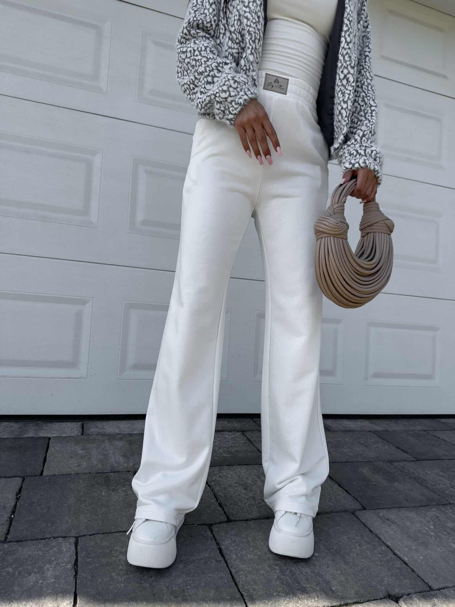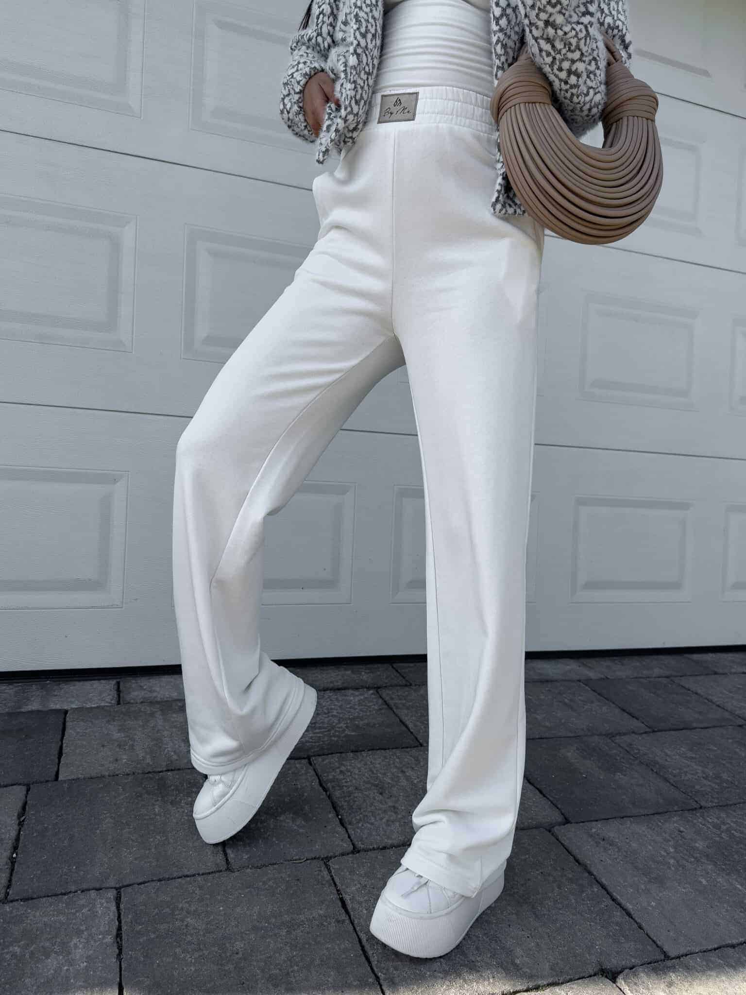 Luźne spodnie dresowe z szerokimi nogawkami to idealne połączenie komfortu i swobodnego stylu. Wykonane z miękkiego materiału, mają prosty krój i szerokie nogawki, które zapewniają maksymalną wygodę i pełną swobodę ruchów. W pasie znajduje się elastyczna gumka, dzięki której spodnie dopasowują się do sylwetki, nie uciskając. Dodatkowym detalem jest subtelna metka z napisem „By Me” przyszyta centralnie na gumce, podkreślająca unikatowy charakter produktu.