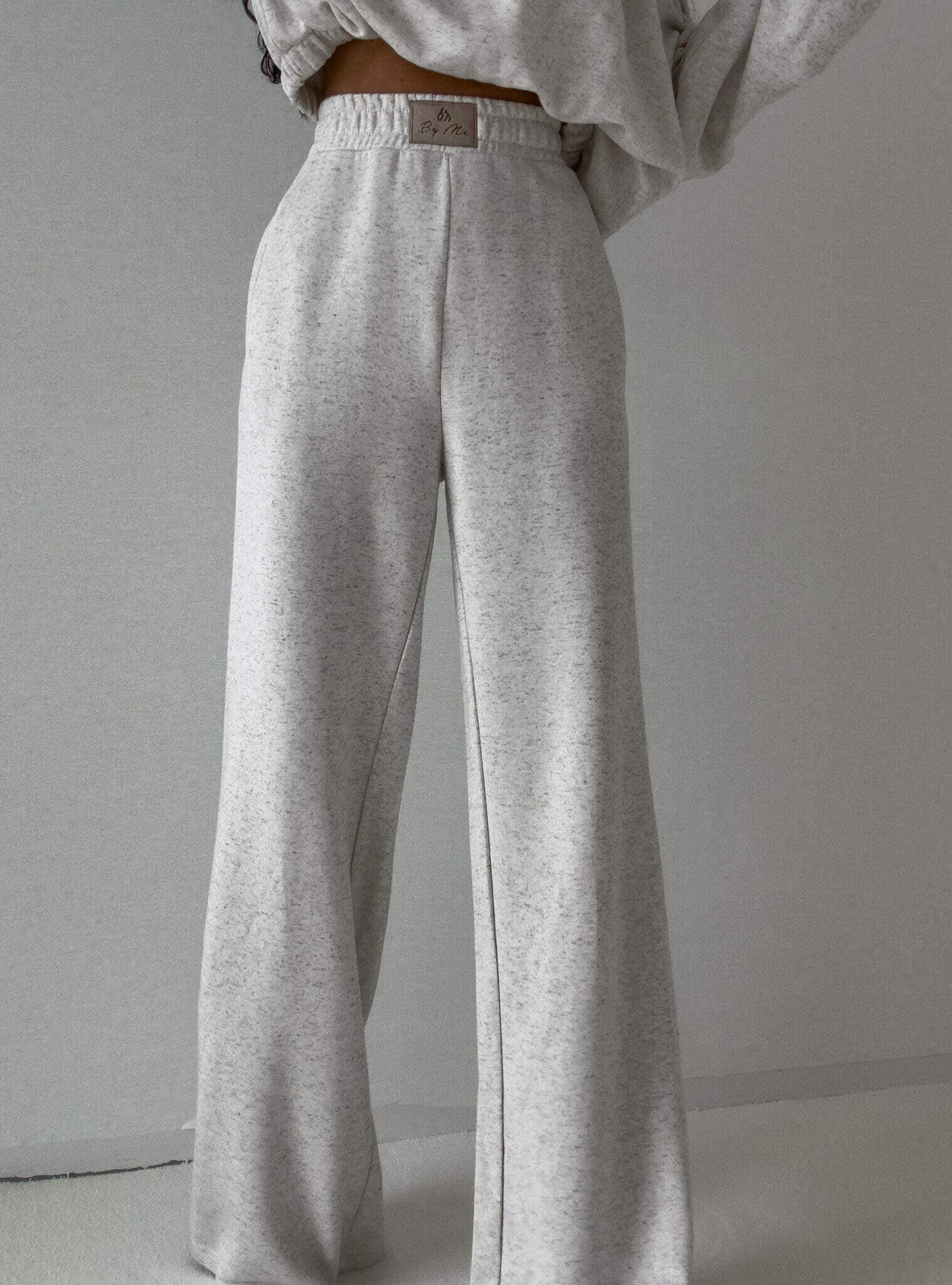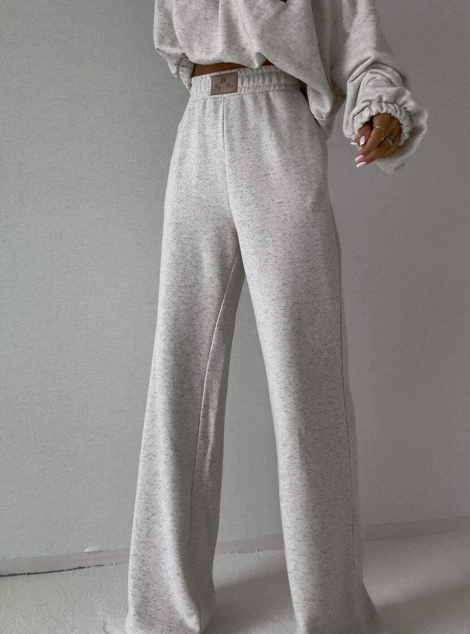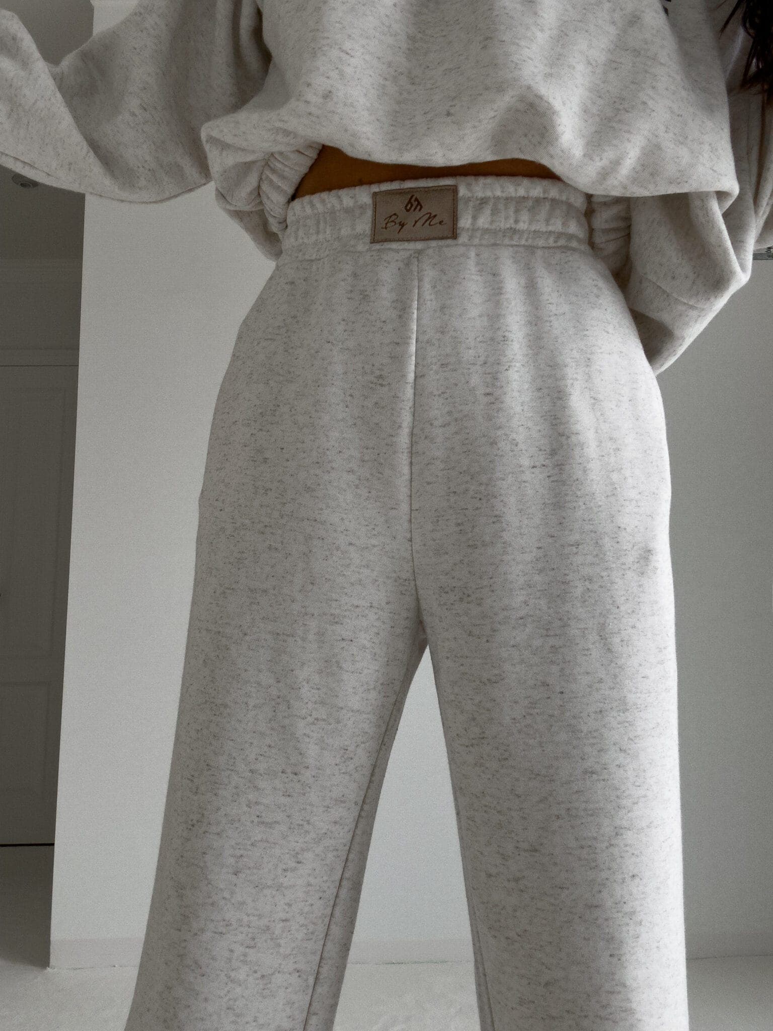 Luźne spodnie dresowe z szerokimi nogawkami to idealne połączenie komfortu i swobodnego stylu. Wykonane z miękkiego materiału, mają prosty krój i szerokie nogawki, które zapewniają maksymalną wygodę i pełną swobodę ruchów. W pasie znajduje się elastyczna gumka, dzięki której spodnie dopasowują się do sylwetki, nie uciskając. Dodatkowym detalem jest subtelna metka z napisem „By Me” przyszyta centralnie na gumce, podkreślająca unikatowy charakter produktu.