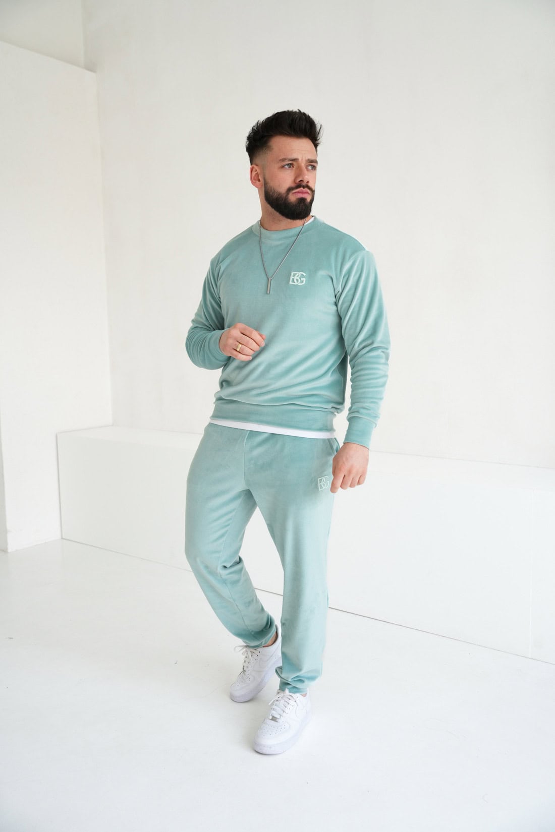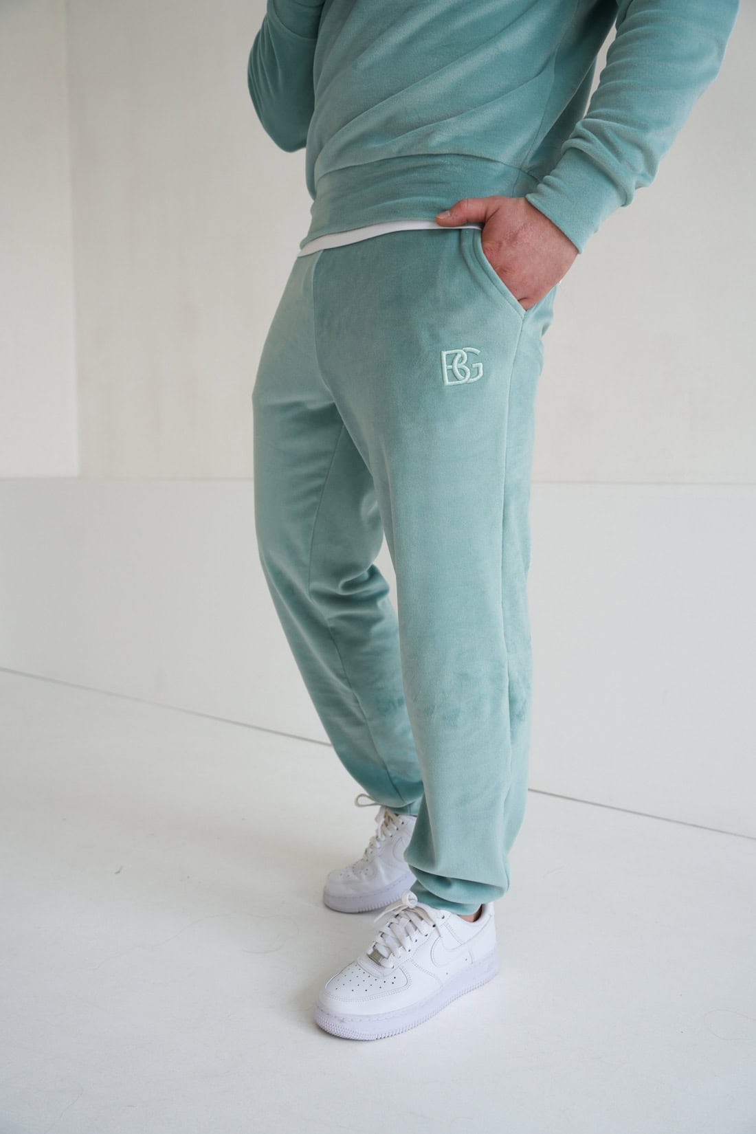 Spodnie welurowe męskie BG Glenn | szałwia