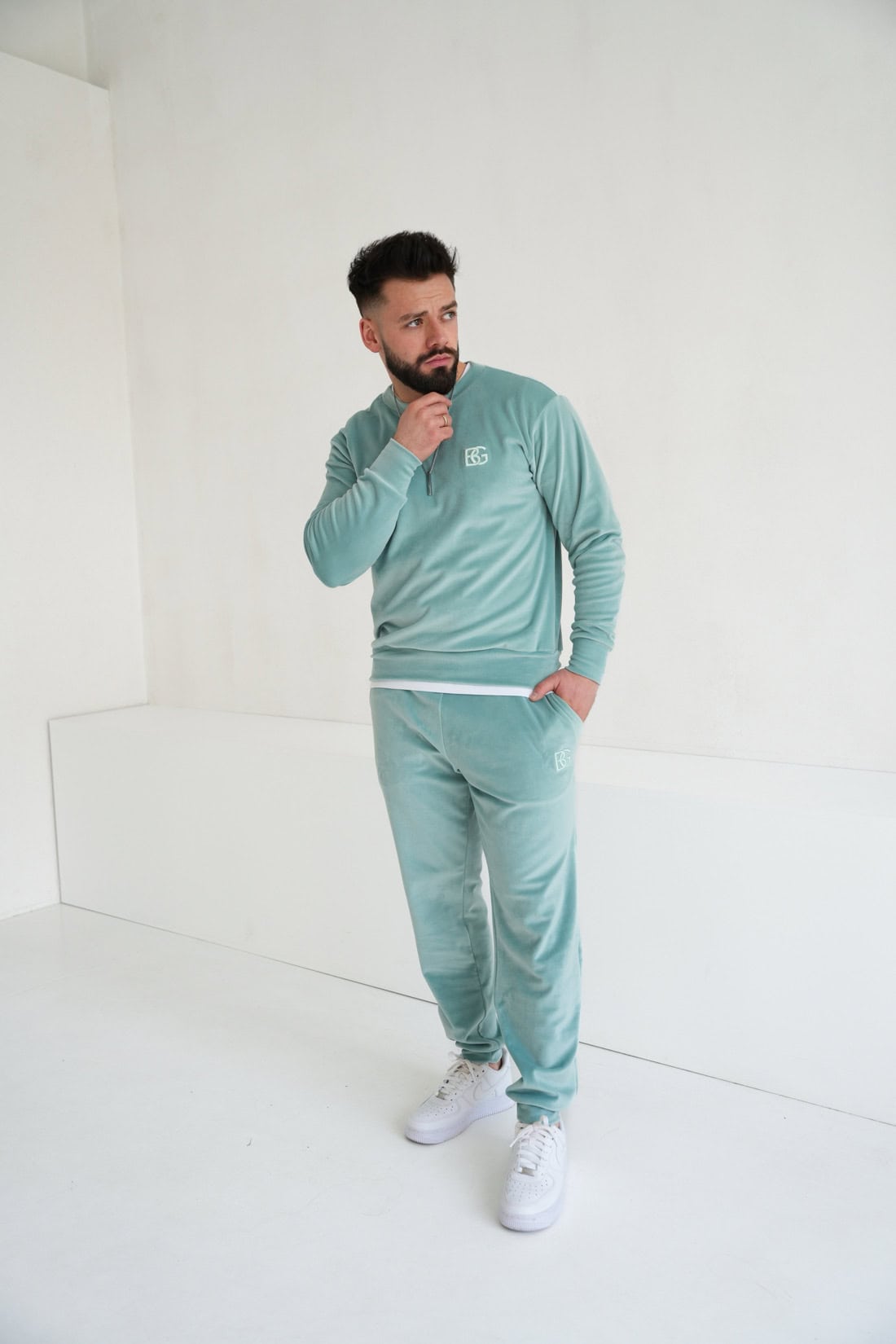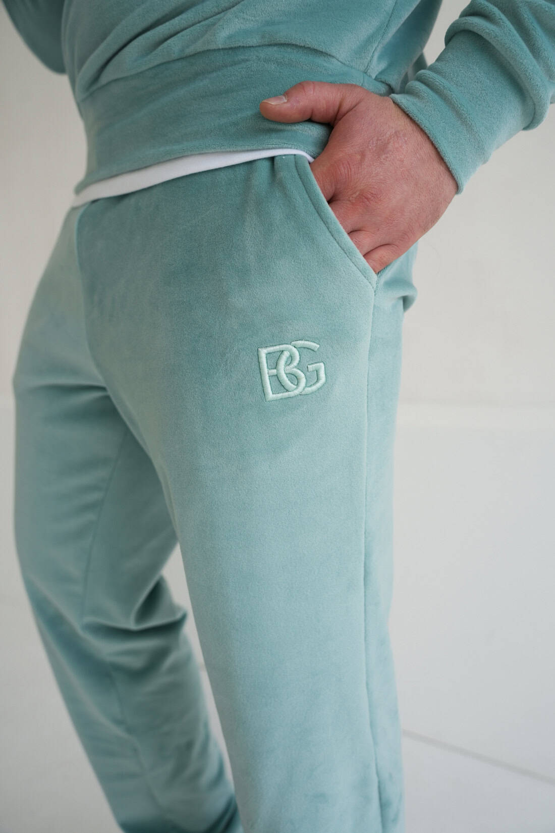Męskie welurowe spodnie – komfort i styl w codziennym wydaniu. Miękki materiał przyjemny w dotyku zapewnia wygodę, a elastyczny pas ze sznurkiem pozwala na idealne dopasowanie. Kieszenie boczne oraz haftowane logo BG podkreślają funkcjonalność i nowoczesny charakter.