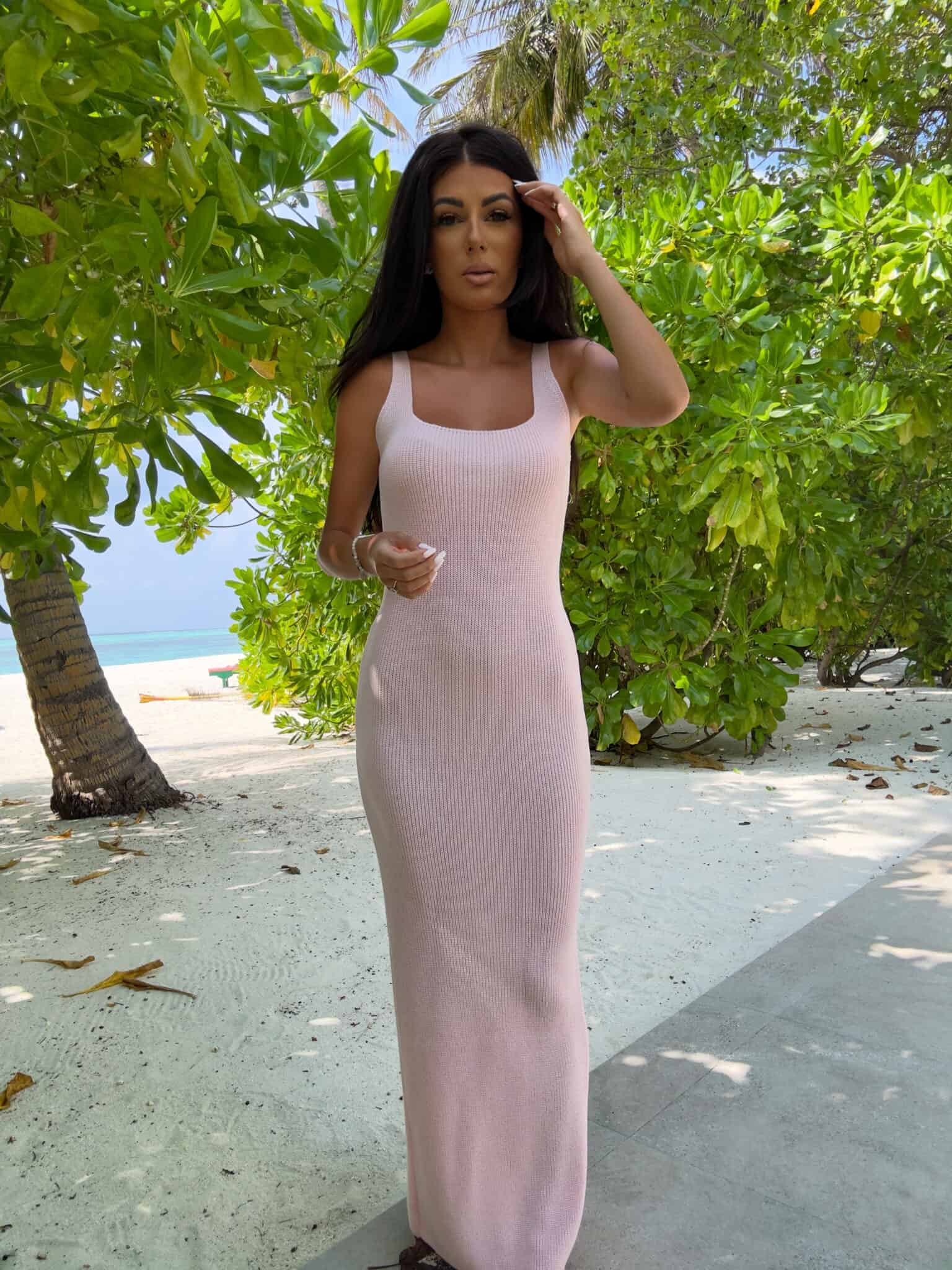 Sukienka na ramiączkach o długości maxi, dekolt karo – idealna na gorące dni, zapewnia komfort i swobodę ruchów. Sukienka ma subtelne rozcięcie z tyłu, które dodaje jej elegancji i sprawia, że staje się jeszcze bardziej zmysłowa. Prosty, ale efektowny krój świetnie podkreśla sylwetkę, a ramiączka nadają całości lekkości. Doskonała na letnie wieczory, plażowe spacery czy imprezy w ciepłych klimatach.