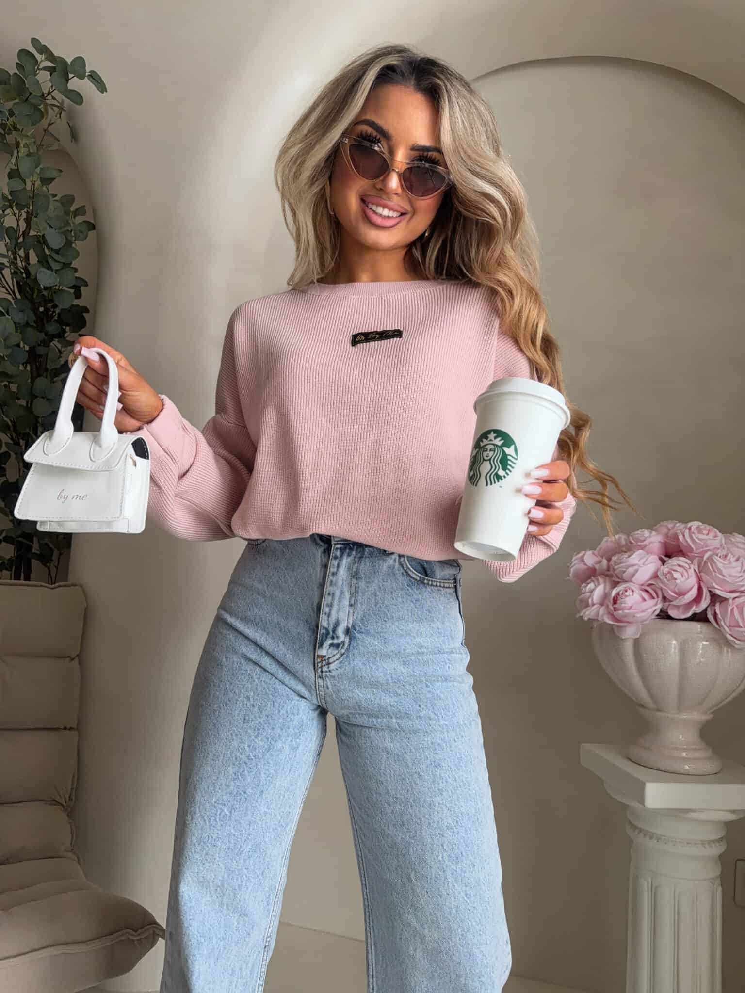Oversize’owy sweter z długimi rękawami, zakładany przez głowę, wyposażony w troczki umożliwiające regulację długości – możesz nosić go na różne sposoby, dopasowując do swojego stylu.