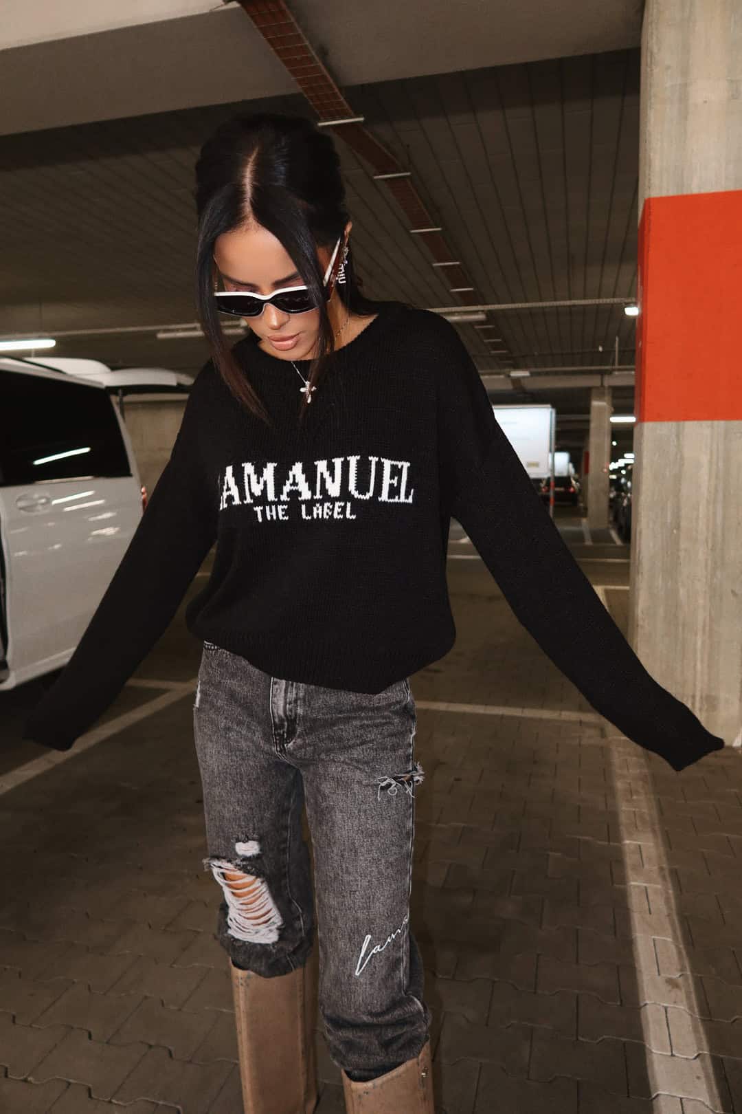 Luźny, dzianinowy sweter z dużym logo, który łączy wygodę z wyrazistym stylem. Obniżona linia ramion i miękka struktura materiału nadają mu nonszalancki charakter. Idealny do miejskich, codziennych stylizacji — wygląda świetnie zarówno z szortami, jak i ulubionymi jeansami.Skład: 85% akryl 15% nylon