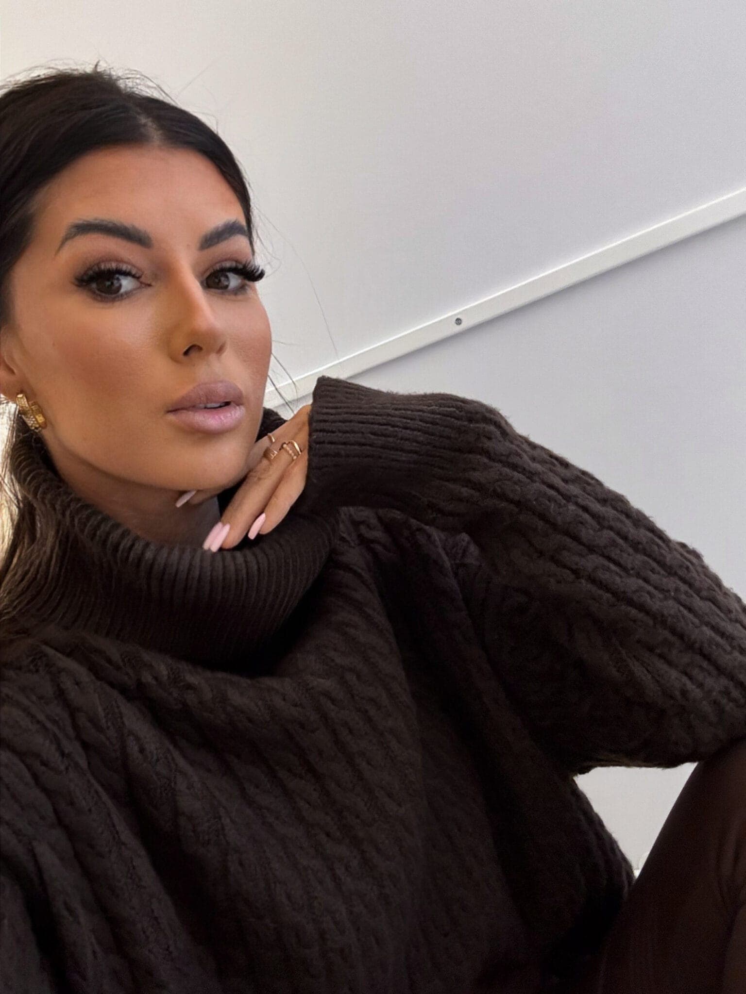 Sweter z golfem, wkładany przez głowę, na długi rękaw z ciekawym splotem. Bardzo ciepły.