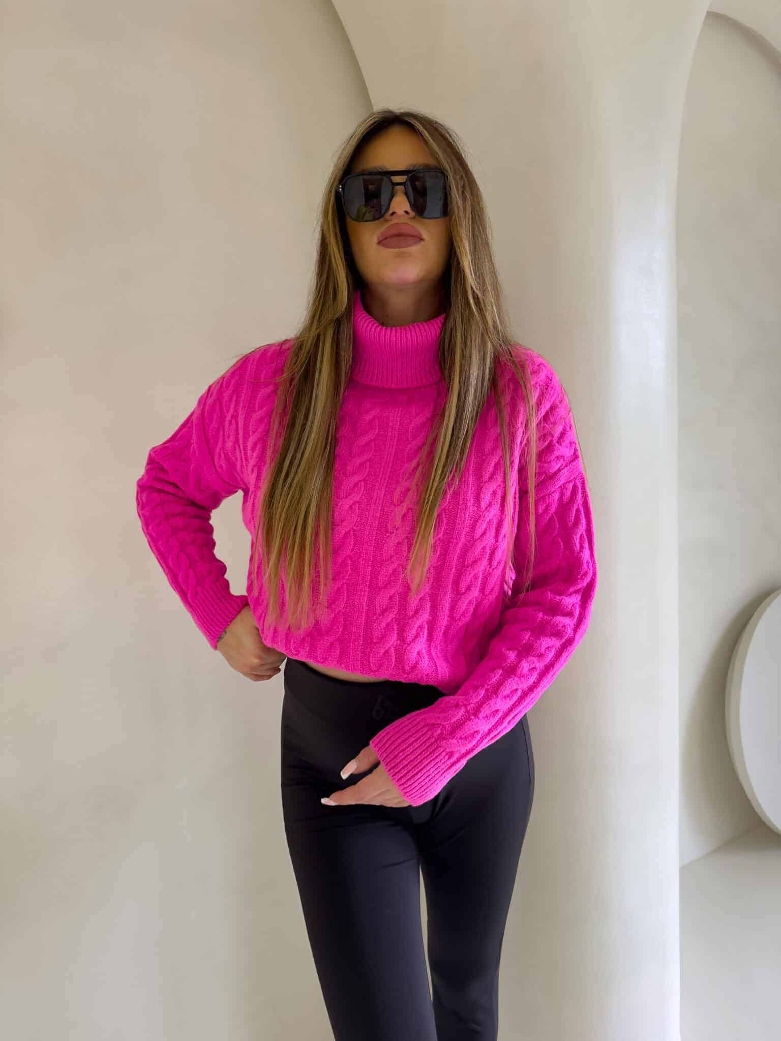 Sweter z golfem, wkładany przez głowę, na długi rękaw z ciekawym splotem. Bardzo ciepły.