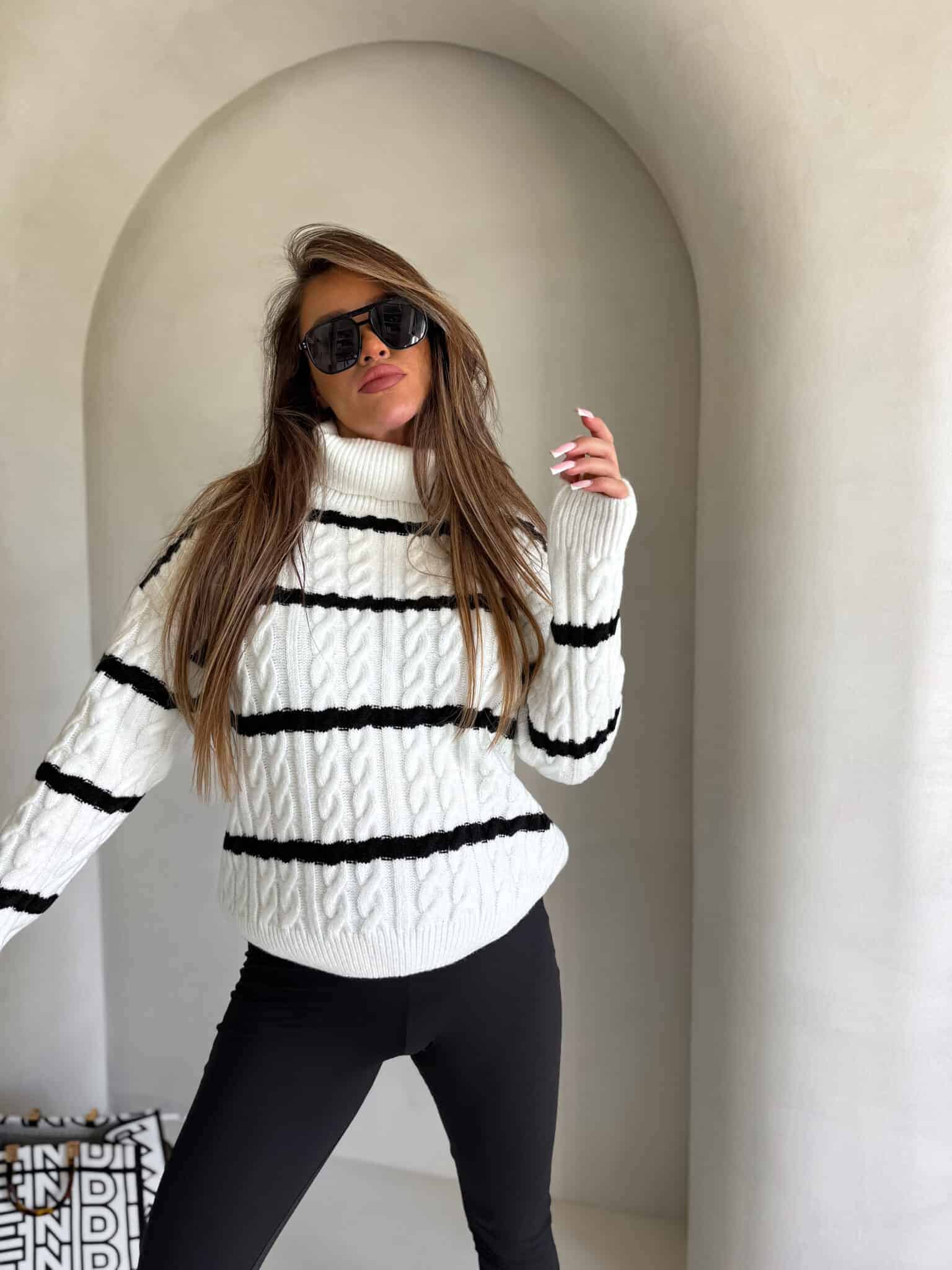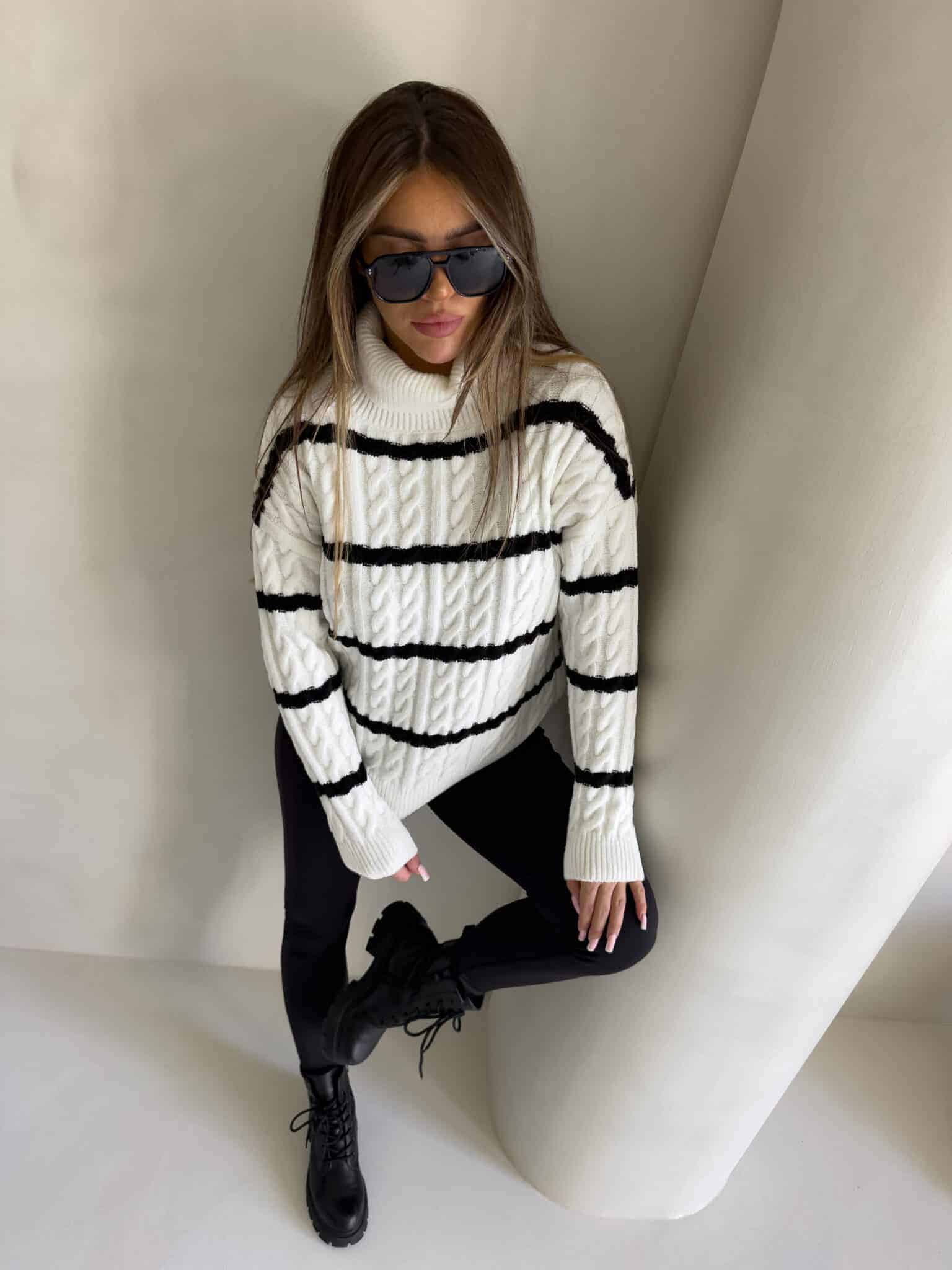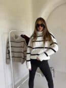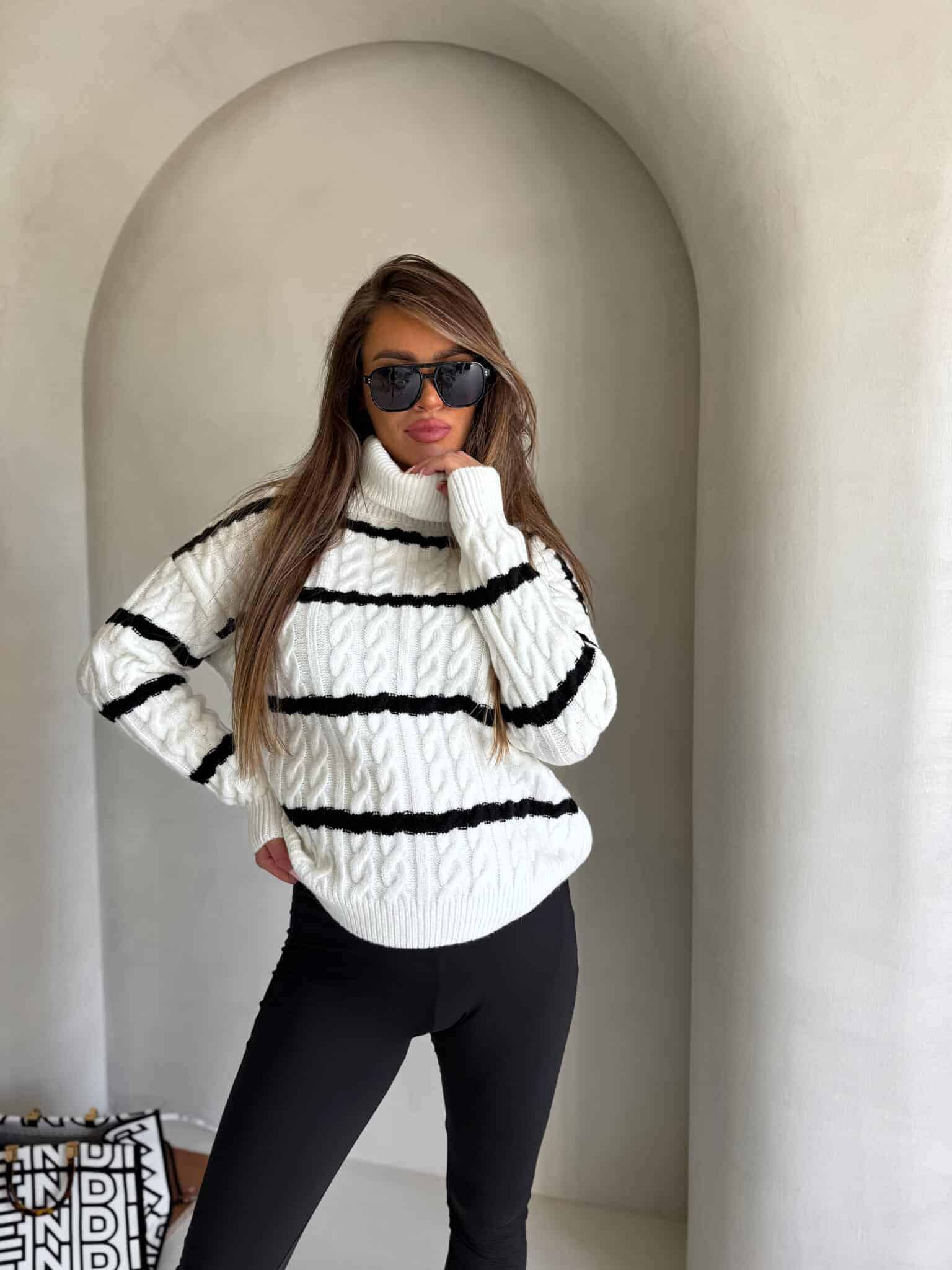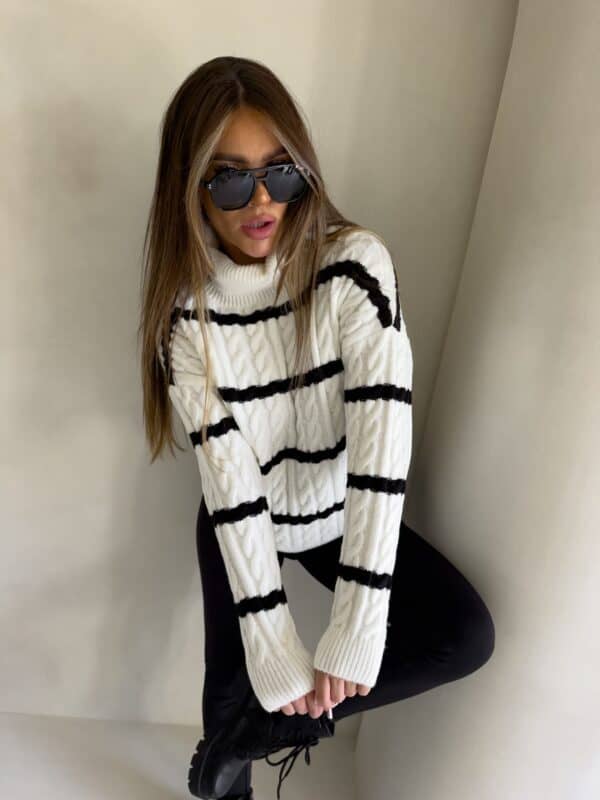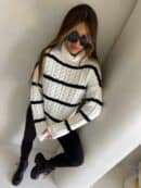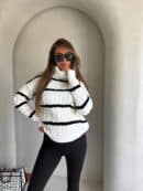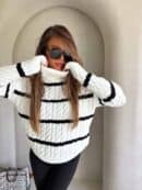 Sweter z golfem, wkładany przez głowę, na długi rękaw z ciekawym splotem. Bardzo ciepły.
