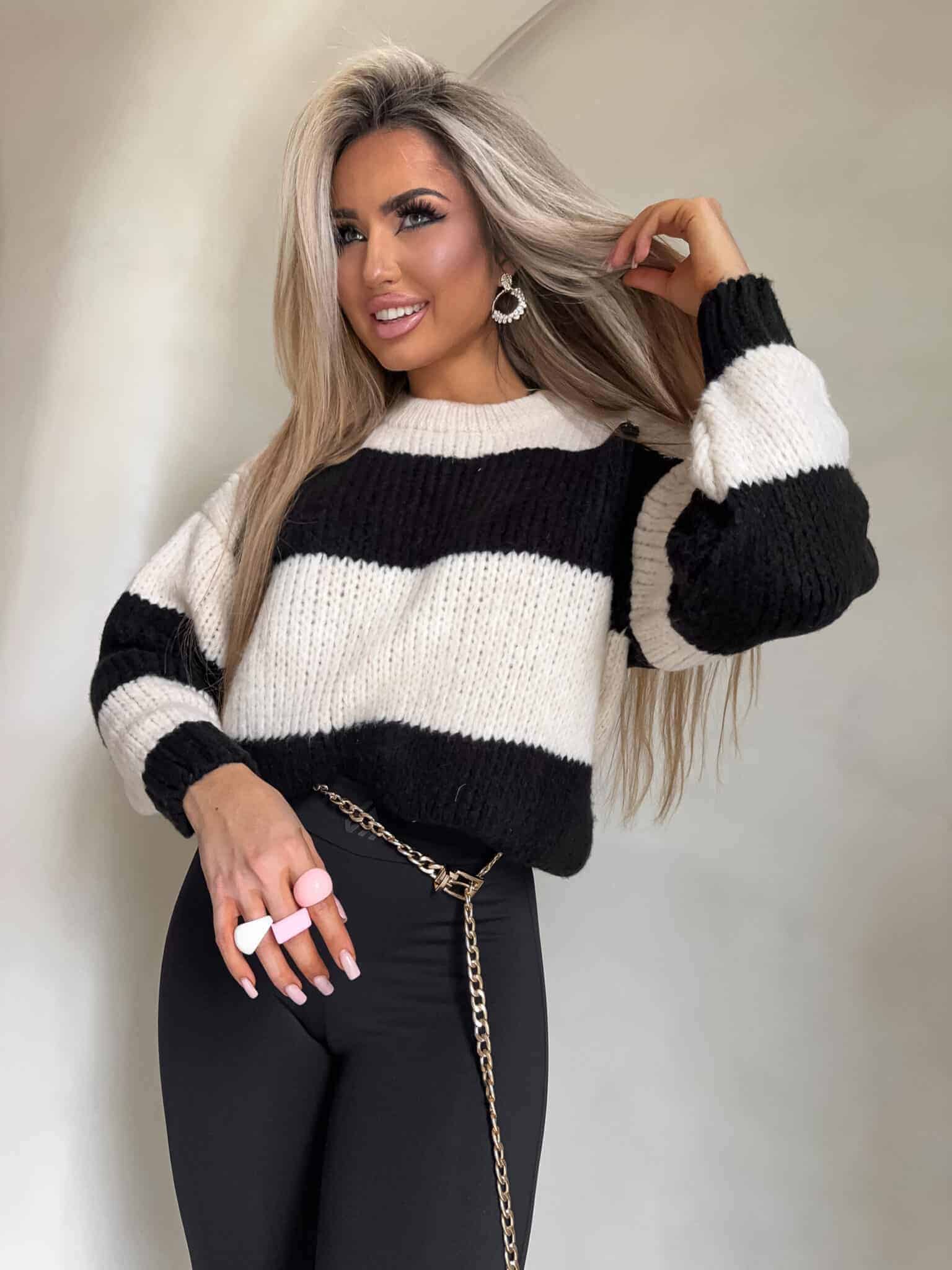 Sweter o lekko oversize’owym kroju, wykonany z miękkiej, przyjemnej w dotyku dzianiny. Opuszczona linia ramion nadaje mu luźny, nowoczesny charakter. Model posiada długie, obszerne rękawy zakończone elastycznymi ściągaczami, które zapewniają wygodę noszenia. Dół swetra oraz klasyczny, okrągły dekolt również wykończone są ściągaczem.