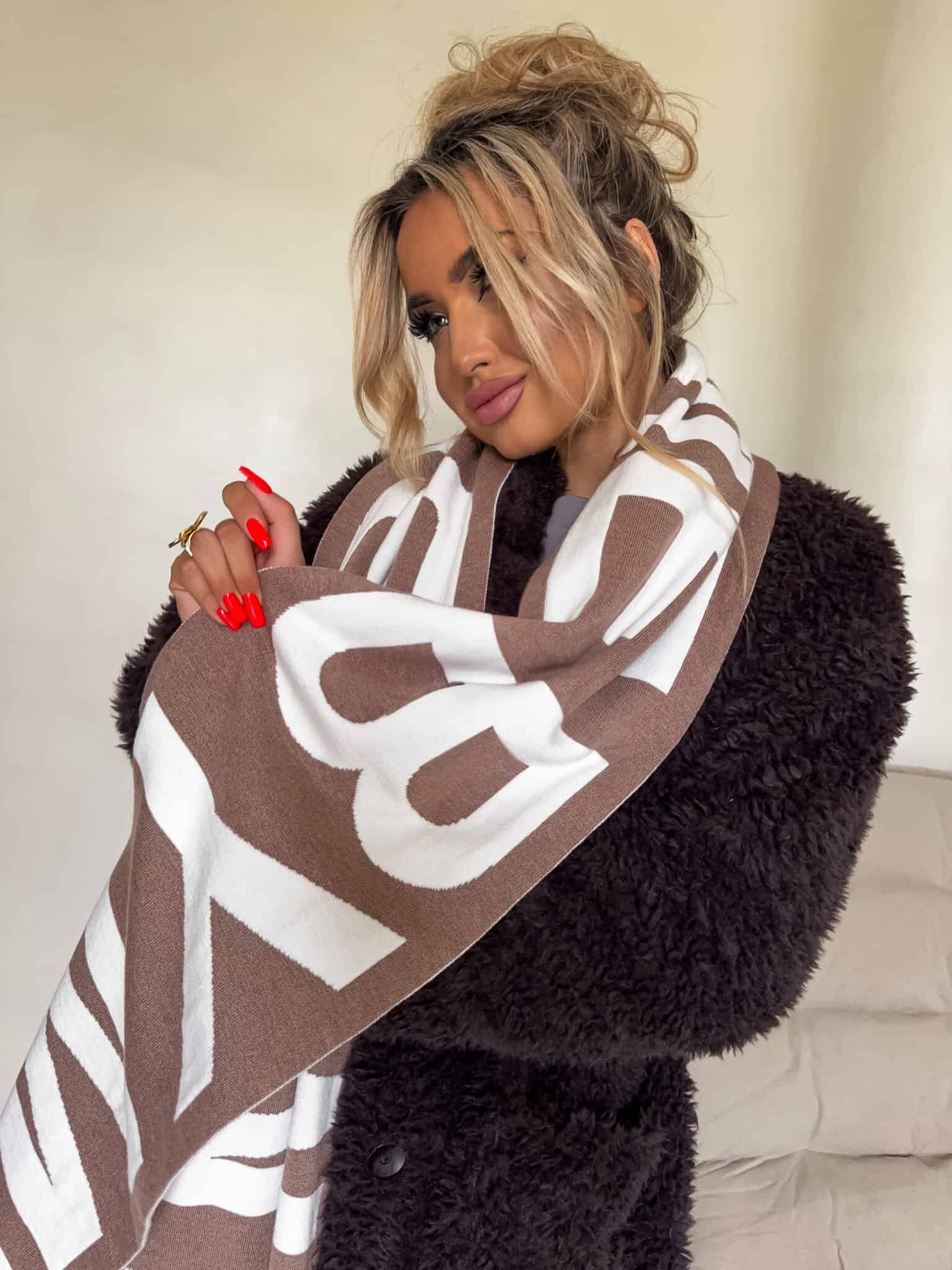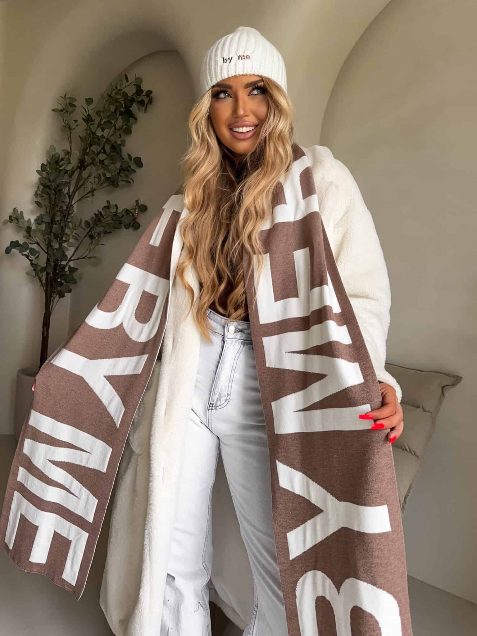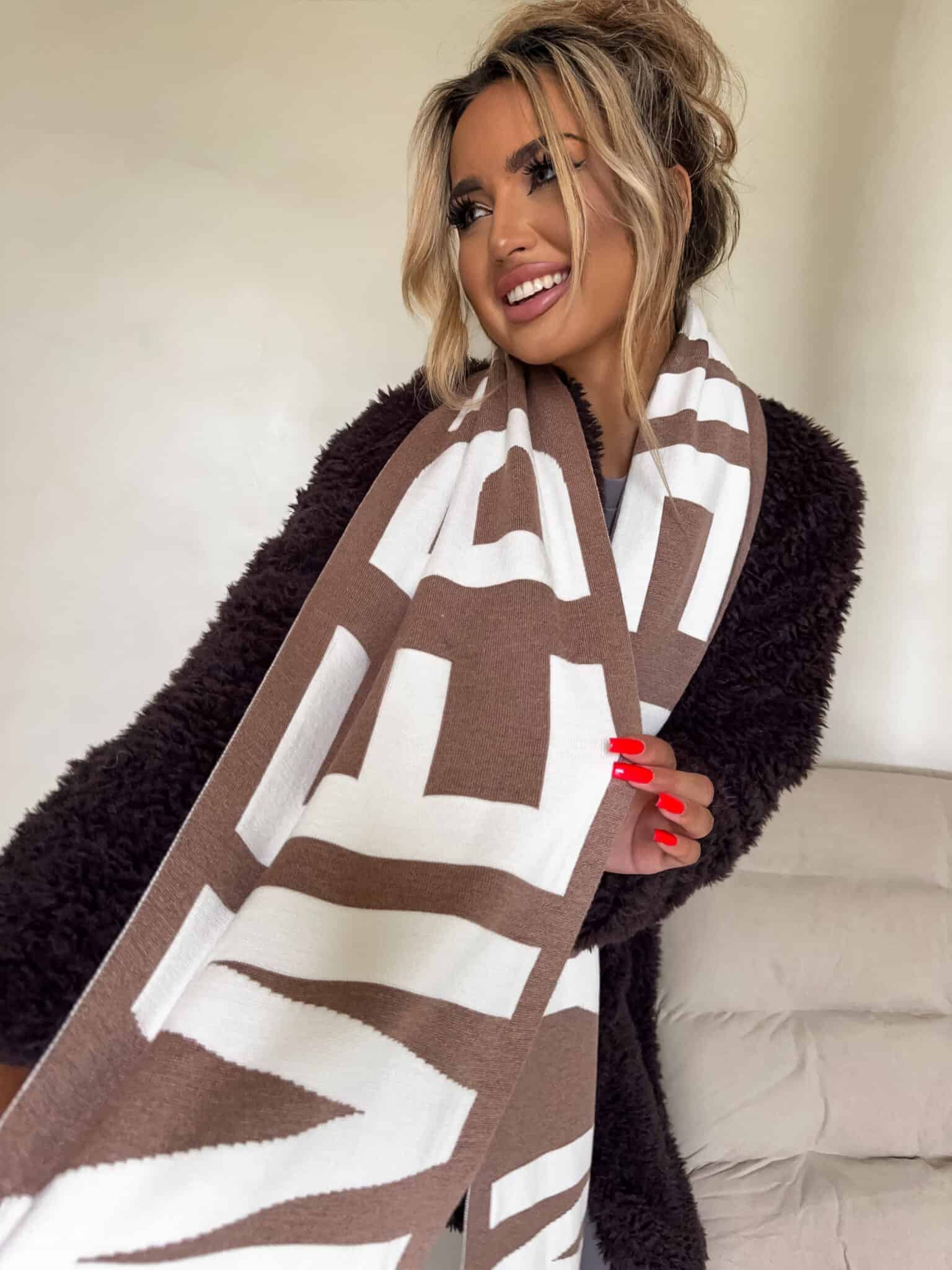 Ten wyjątkowy szal został wykonany z wysokiej jakości mieszanki wiskozy i kaszmiru, dzięki czemu jest niezwykle miękki, ciepły i przyjemny w dotyku. Logowany wzór dodaje mu charakteru, podkreślając nowoczesny styl.