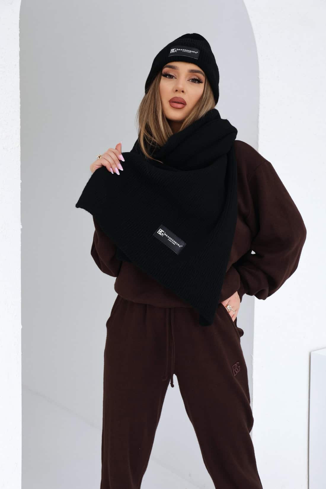 Opis produktu: Szalik z przyjemnego ciepłego materiału. Logowanie marką BG na naszywce.