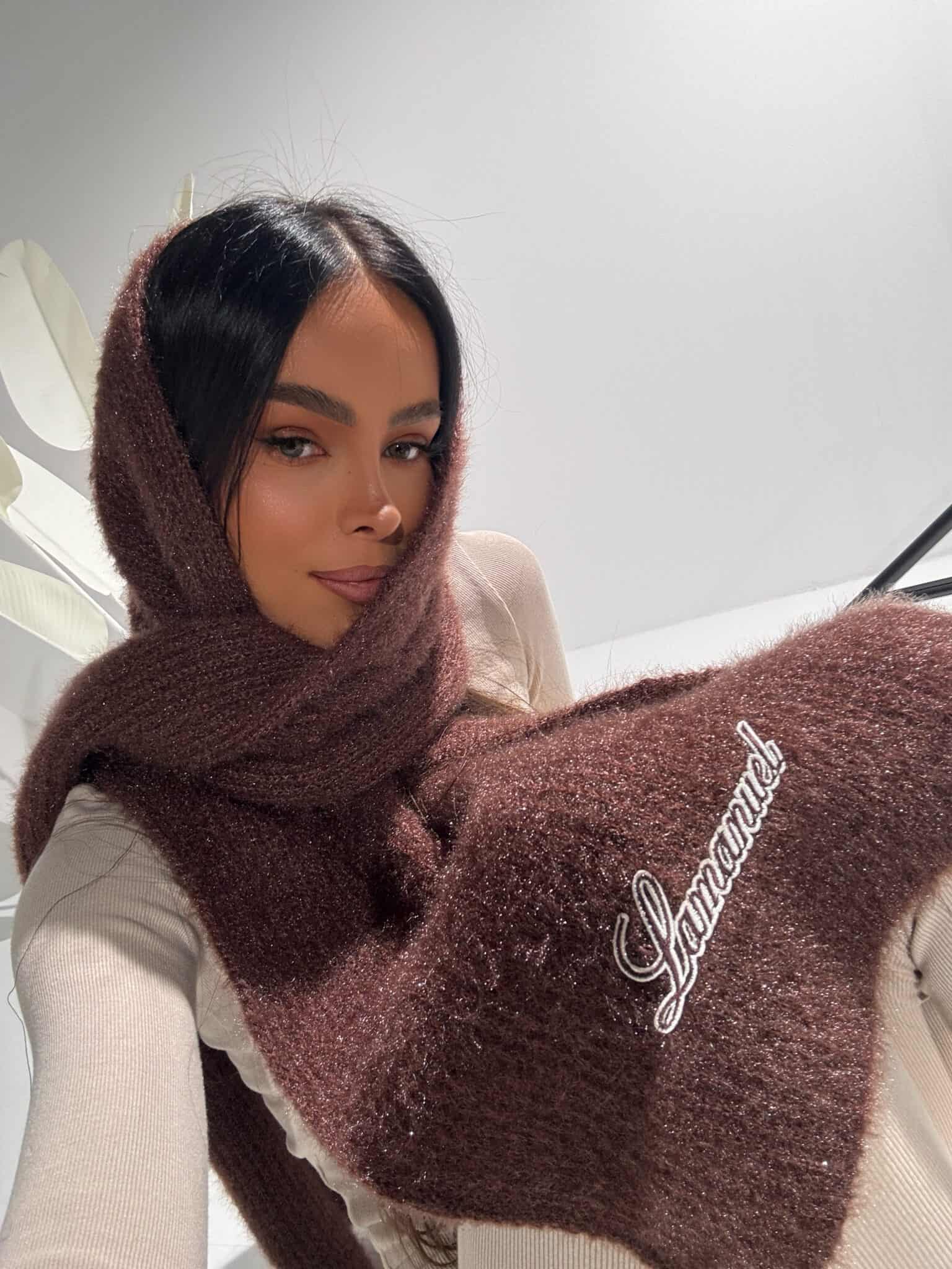 Mięsisty szalik z grubym splotem i długimi frędzlami. Wyróżnia się charakterystyczną fakturą i widoczną naszywką z logo. Otula szyję i dodaje stylu każdej zimowej stylizacji.Skład: 38% akryl 25% moher 20% wełna 17% poliamid