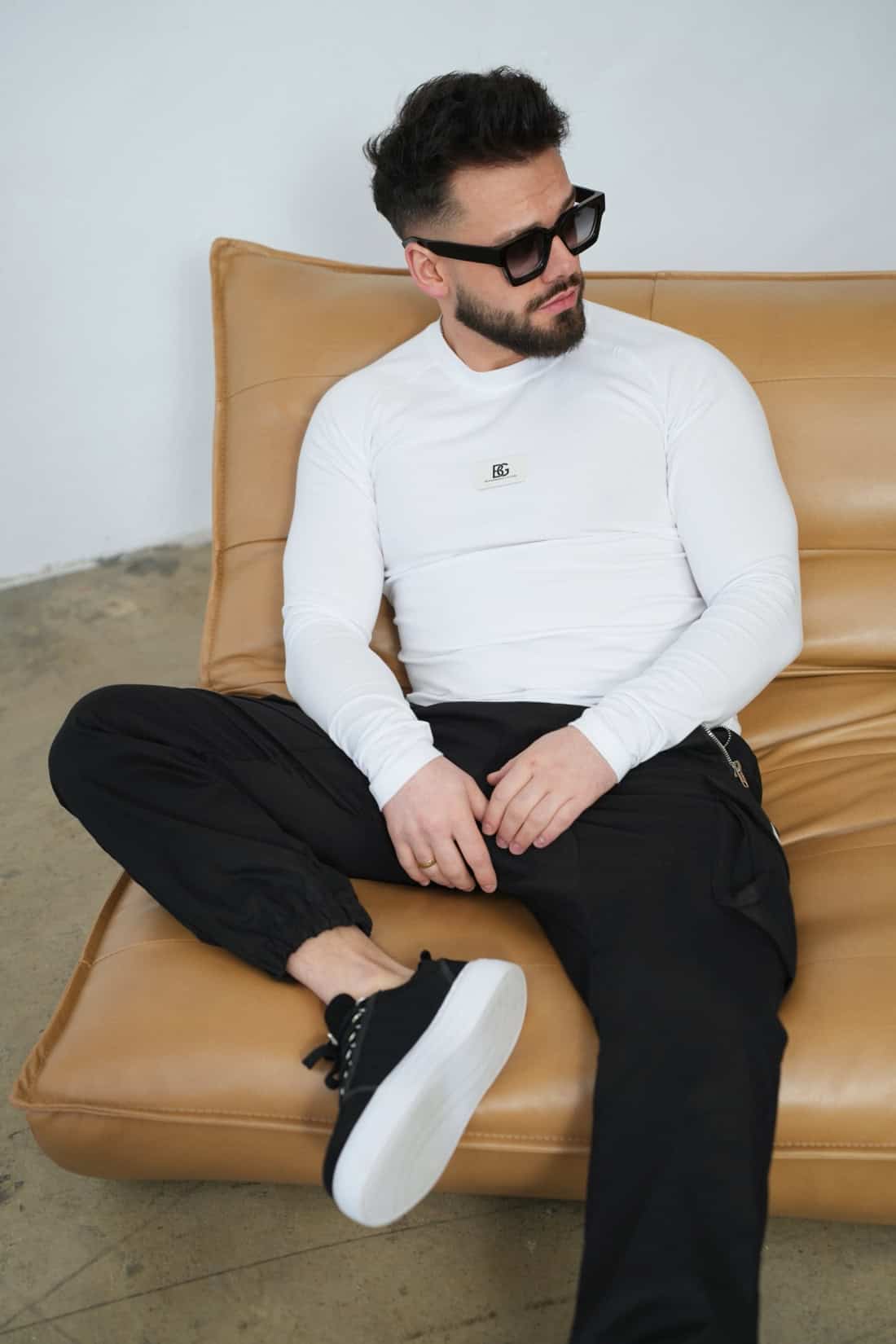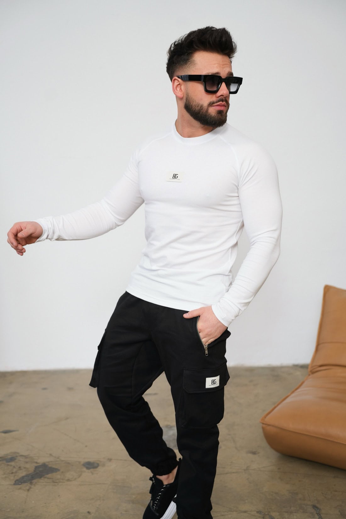 Opis produktu: Męski t-shirt longsleeve BG DOOM z najwyższej jakości elastycznej bawełny. Krój slim. Idealnie dopasowuje się do sylwetki. Naszywka z logo marki BG Brandenburg Couture na klatce.