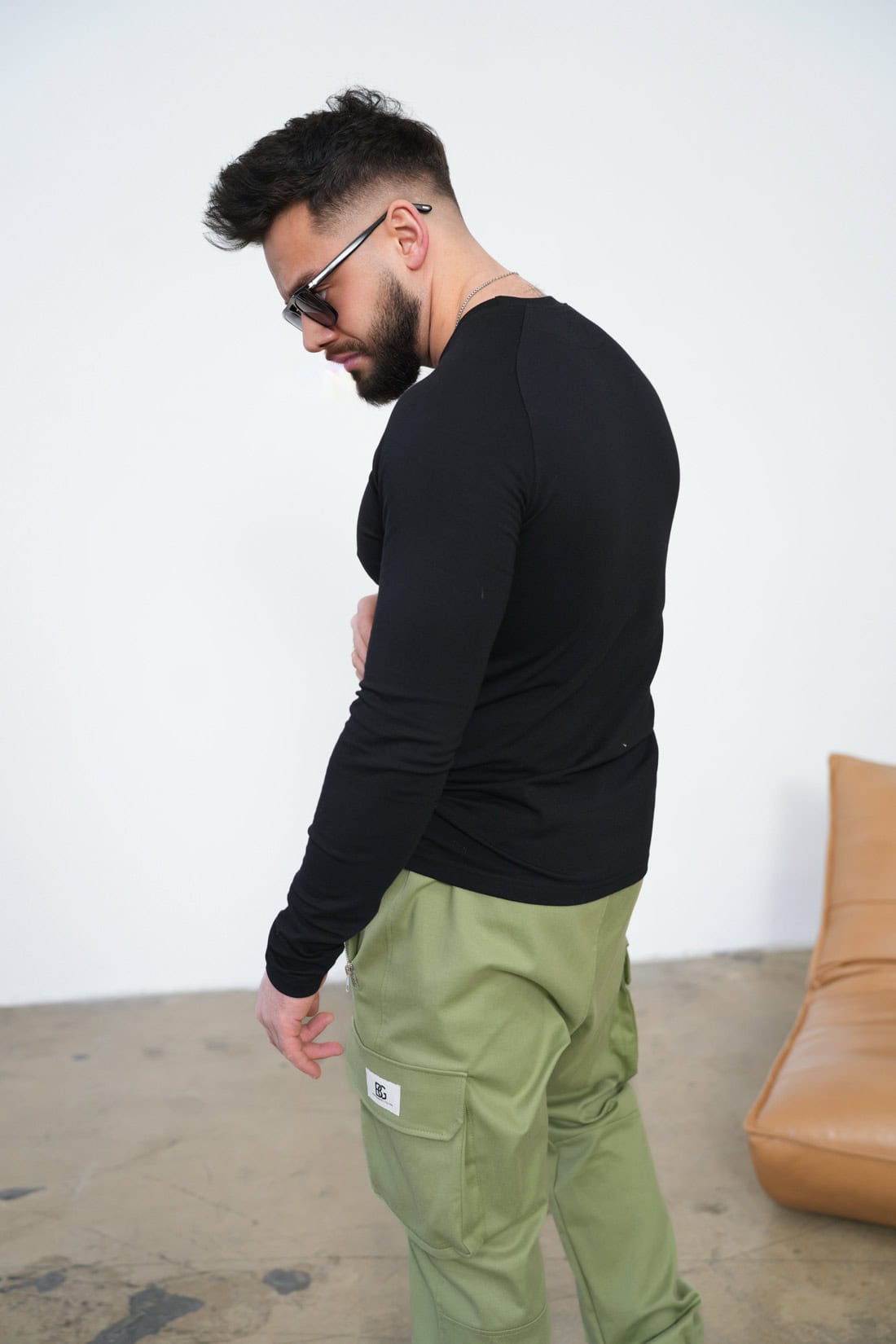 Opis produktu: Męski t-shirt longsleeve BG DOOM z najwyższej jakości elastycznej bawełny. Krój slim. Idealnie dopasowuje się do sylwetki. Naszywka z logo marki BG Brandenburg Couture na klatce.