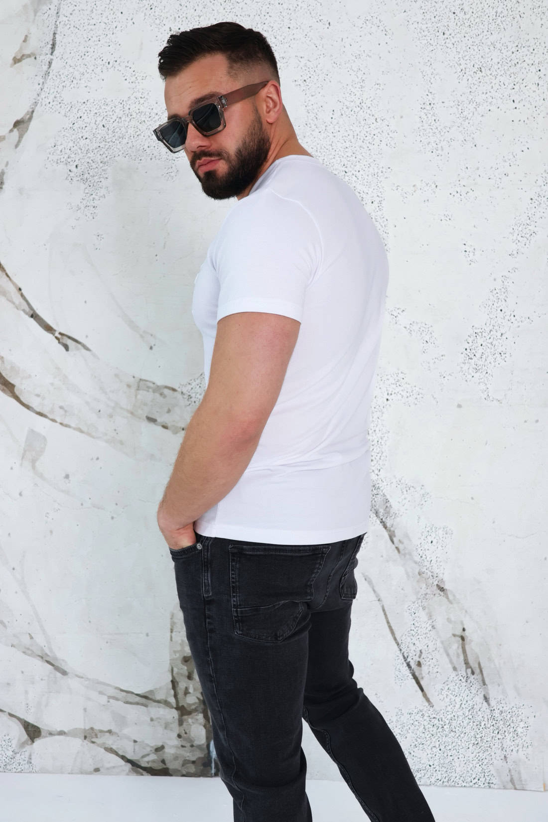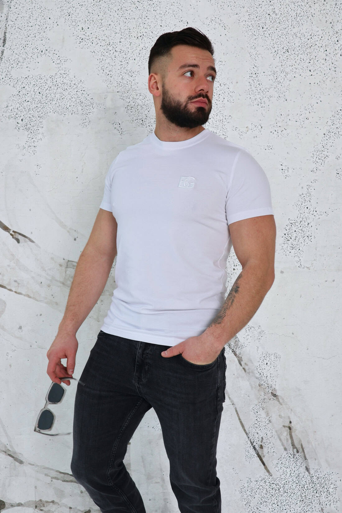 Opis produktu: Klasyczny T-shirt BG BOND z wysokiej jakości bawełny z domieszką elastanu. Posiada logowanie marki BG na piersi w kolorze materiału.
