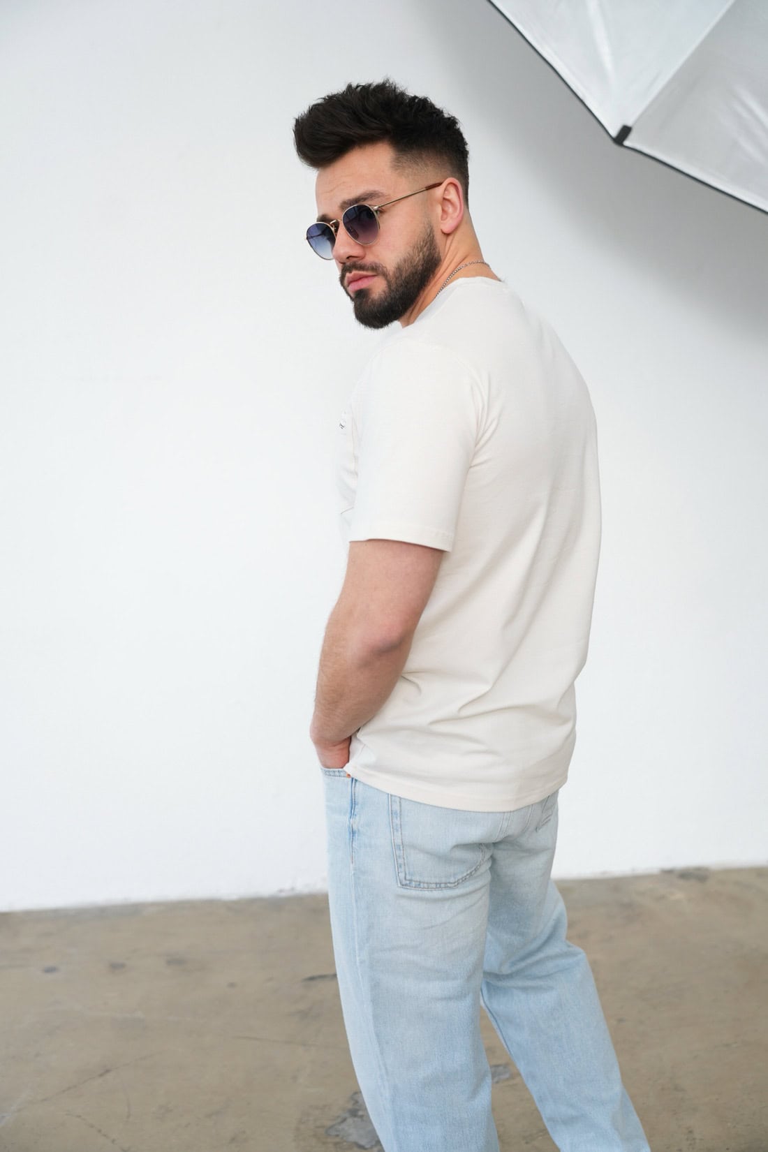 Opis produktu: Męski t-shirt BG SUNNY z najwyższej jakości elastycznej bawełny. Krój regular. Na lewej piersi kieszonka a na podwinięciu kieszonki ozdobna naszywka z logo marki BG Brandenburg Couture.
