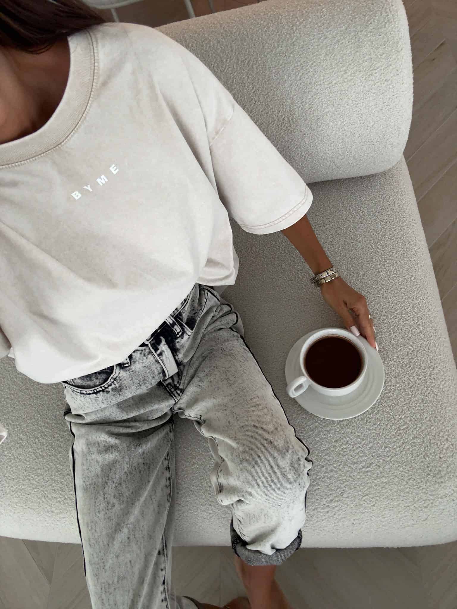 T-shirt Play to połączenie nowoczesnego stylu z komfortem na co dzień. Wykonany z wysokiej jakości bawełny, która zapewnia trwałość i przyjemność noszenia. Charakteryzuje się efektem dekatyzacji. Delikatny nadruk na środku klatki piersiowej oraz na jednym rękawie dodaje subtelnego, designerskiego akcentu. Model posiada nieco dłuższe rękawy, które podkreślają jego nowoczesny fason.