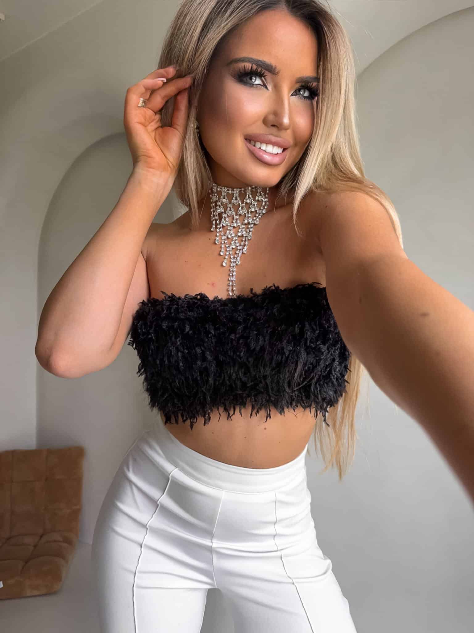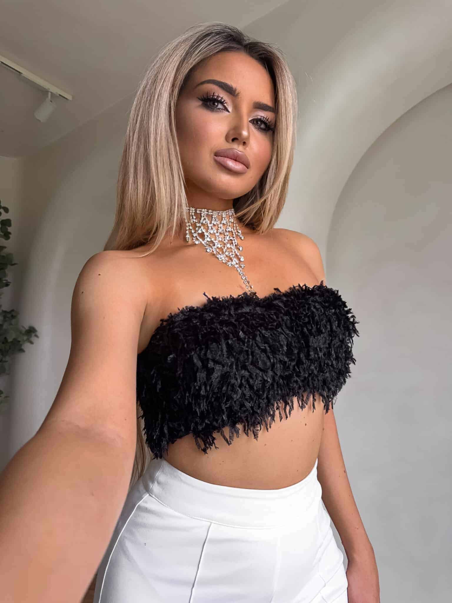 Top Awesome to idealna baza do wielu stylizacji. Bez ramiączek. Wykonany z delikatnych przyjemnych w dotyku “piórek”.