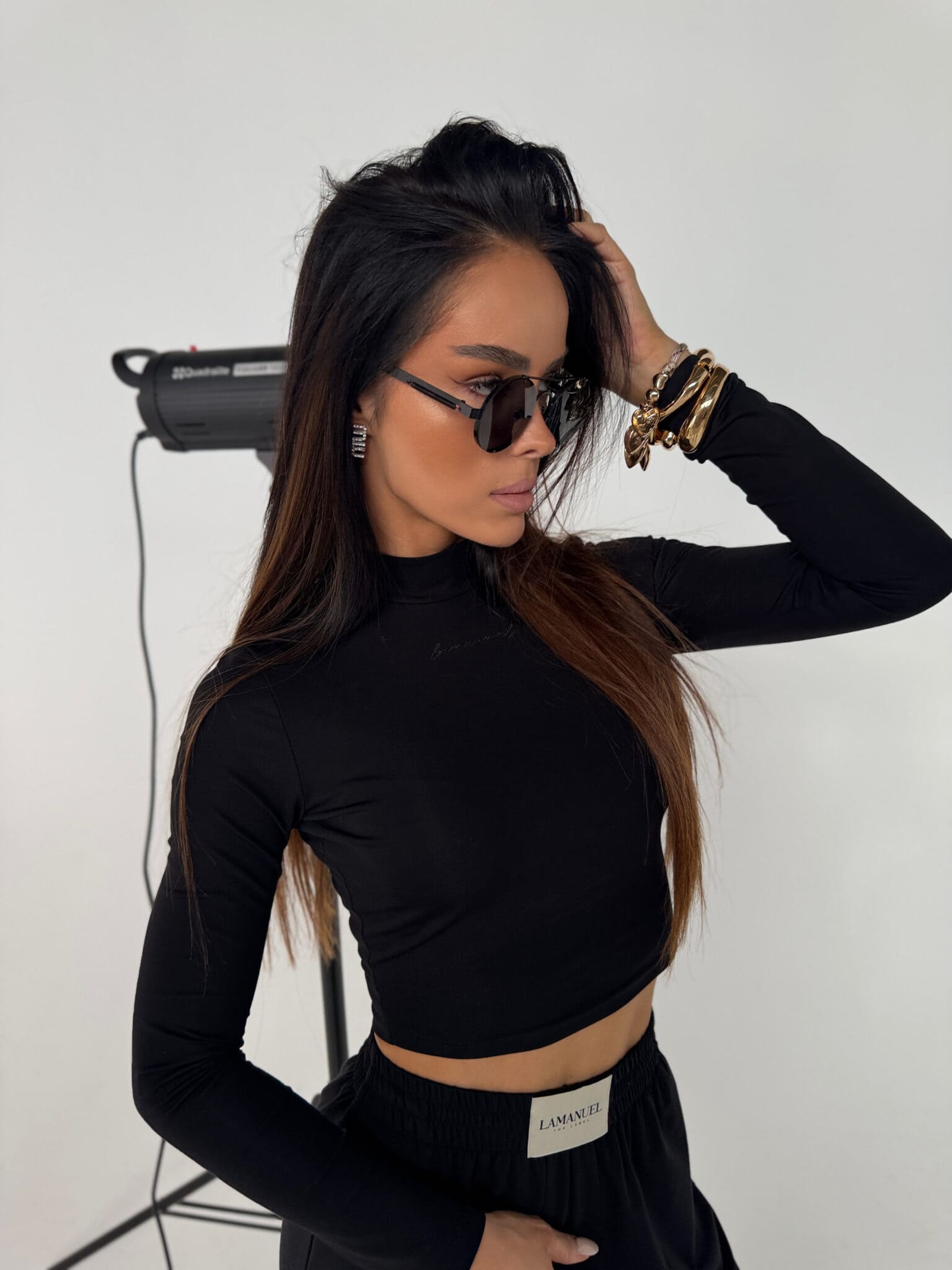 Dopasowany top z długim rękawem wykonany z miękkiej, elastycznej dzianiny modalowej. Posiada zabudowany dekolt i krótszy krój, który idealnie komponuje się ze spodniami z wysokim stanem. Subtelne logo z przodu w kolorze materiału. Komfortowy, oddychający i przyjemny dla skóry.Skład: 60% rayon 31% nylon 9% spandex