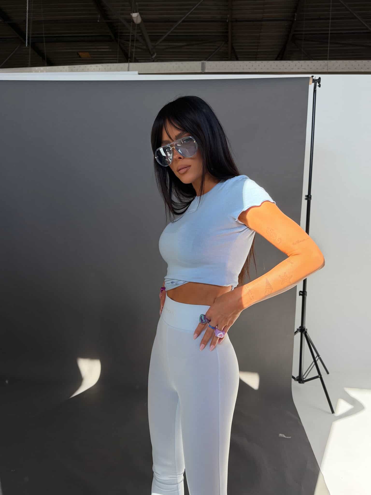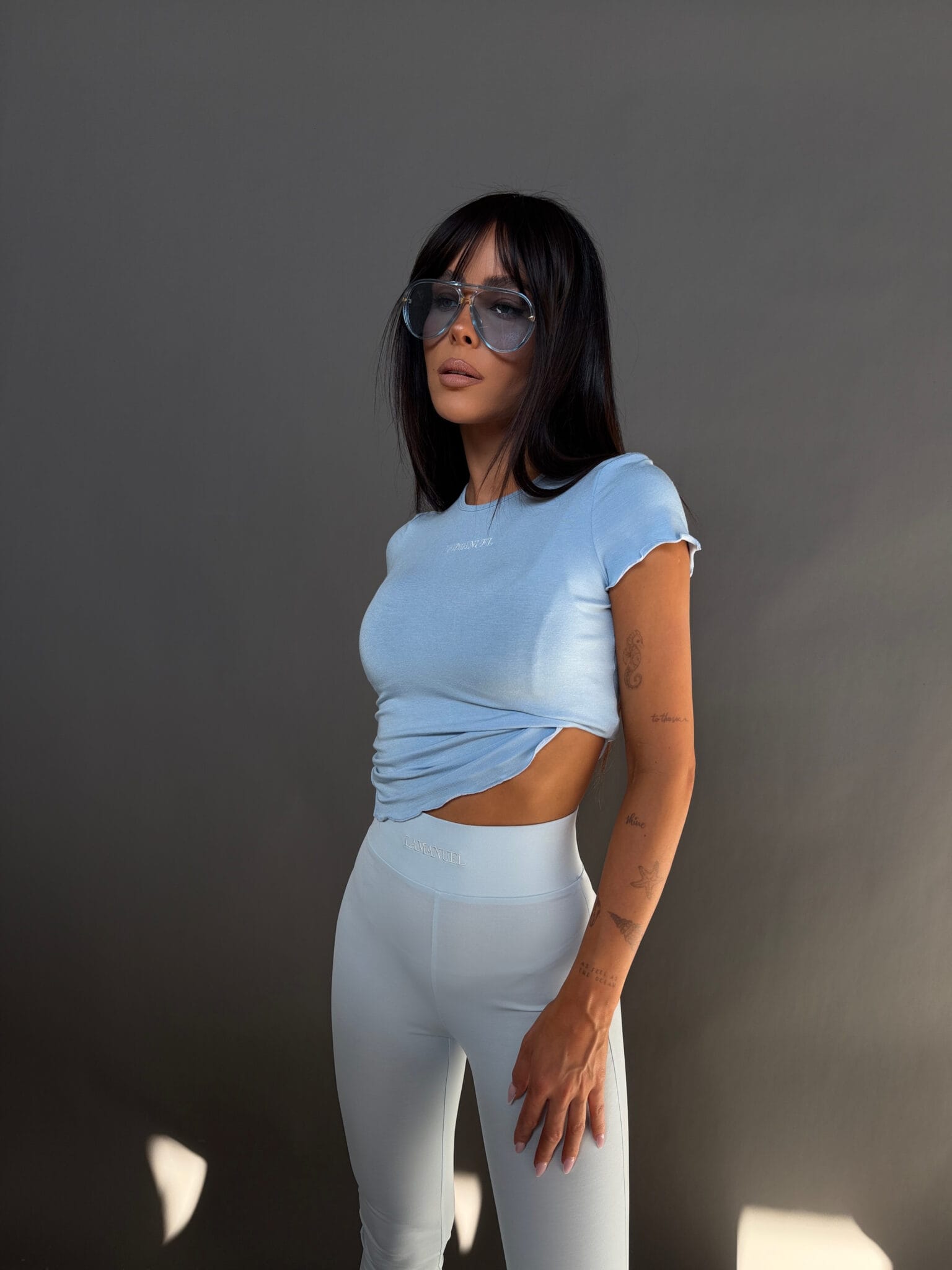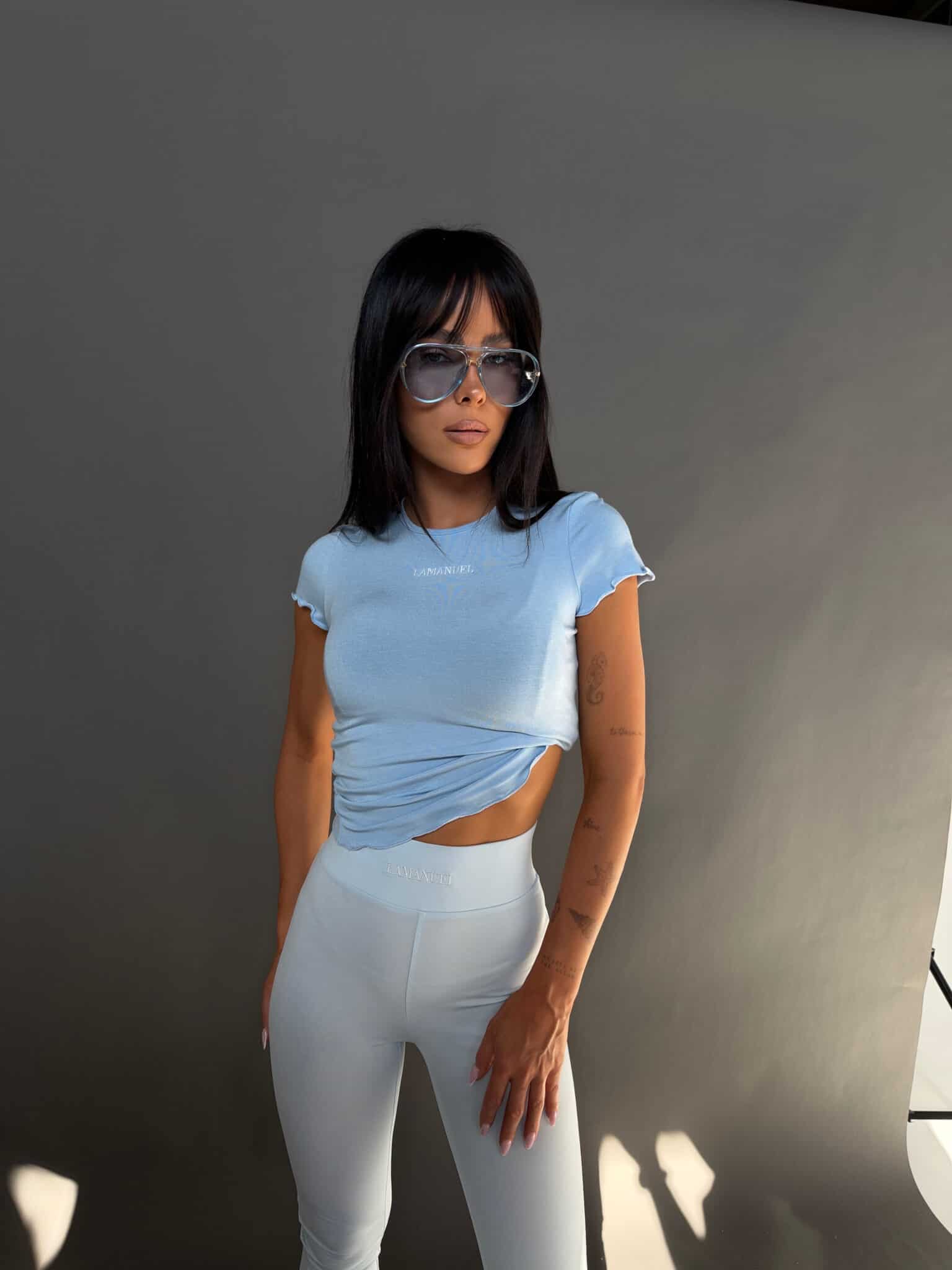 Delikatny top wykonany z bardzo cienkiej, lekkiej wiskozy, która miękko układa się na sylwetce i daje efekt subtelnej „mgiełki”. Dopasowany fason podkreśla figurę, a krótkie rękawy i dół wykończone mereżką nadają całości lekkości i dziewczęcego charakteru. Minimalistyczna forma sprawia, że model świetnie sprawdza się jako baza codziennych stylizacji oraz w zestawach warstwowych.Skład: 95% wiskoza 5% elastan
