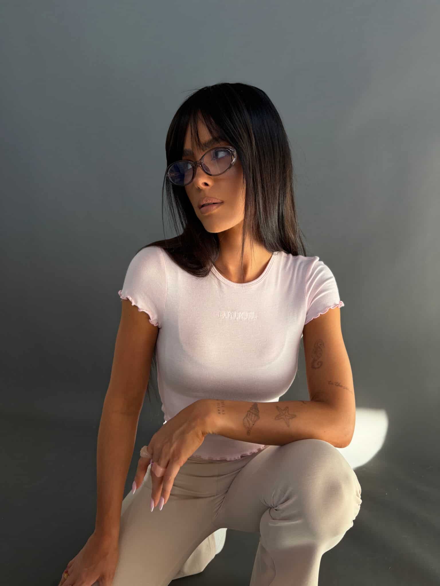 Delikatny top wykonany z bardzo cienkiej, lekkiej wiskozy, która miękko układa się na sylwetce i daje efekt subtelnej „mgiełki”. Dopasowany fason podkreśla figurę, a krótkie rękawy i dół wykończone mereżką nadają całości lekkości i dziewczęcego charakteru. Minimalistyczna forma sprawia, że model świetnie sprawdza się jako baza codziennych stylizacji oraz w zestawach warstwowych.Skład: 95% wiskoza 5% elastan