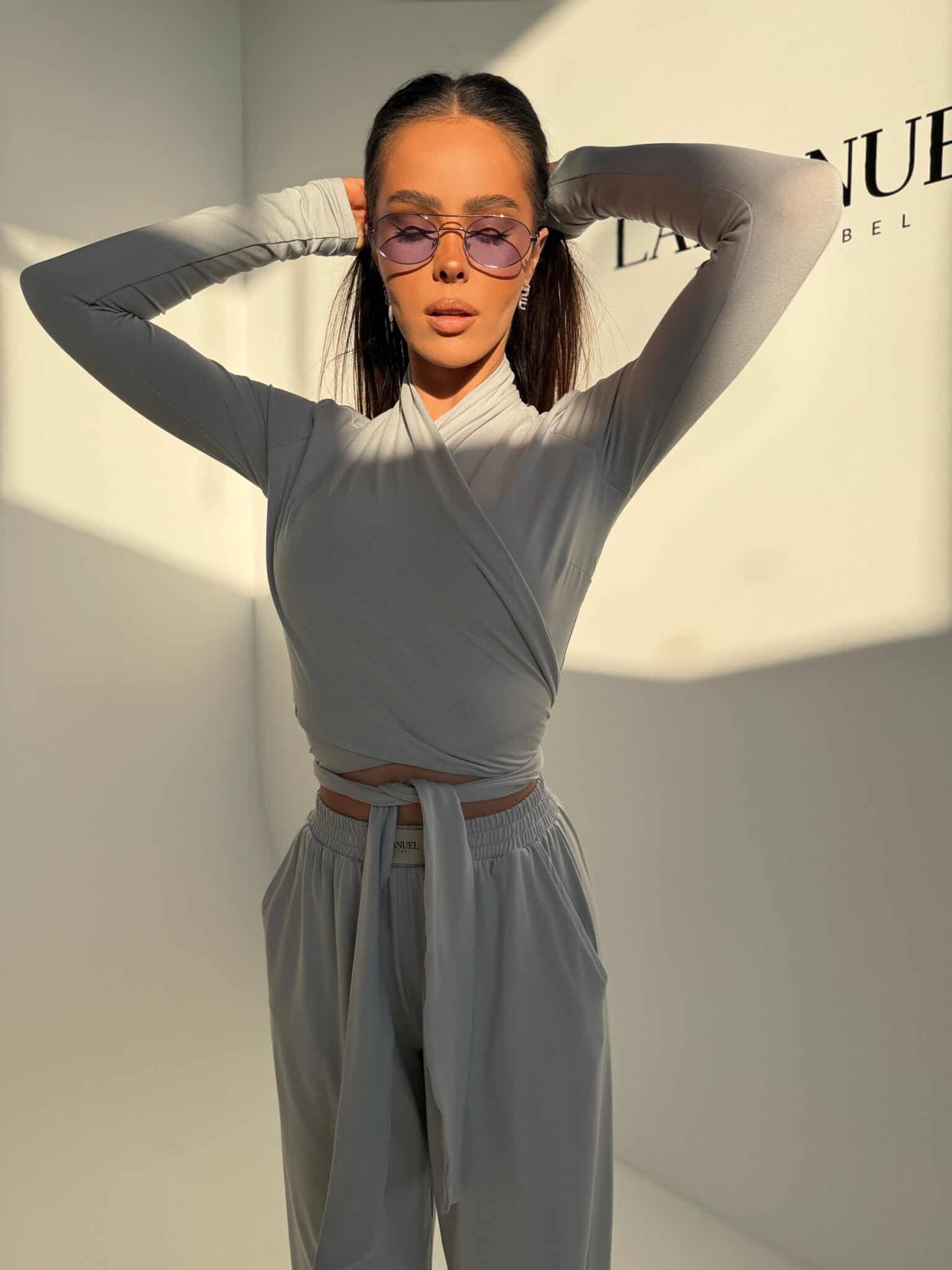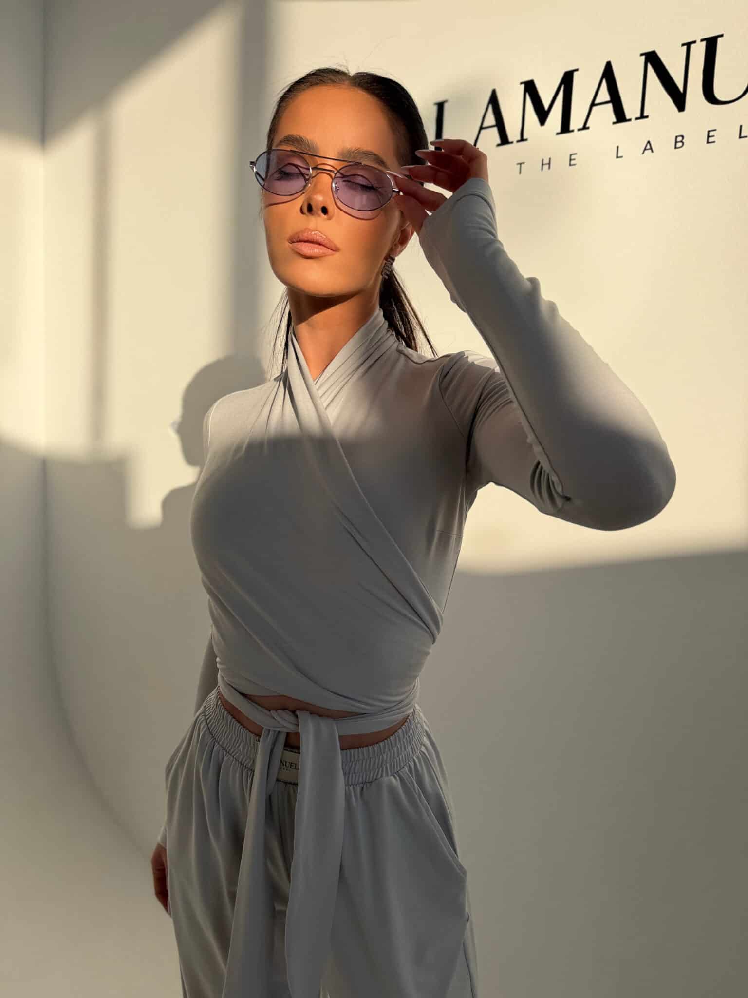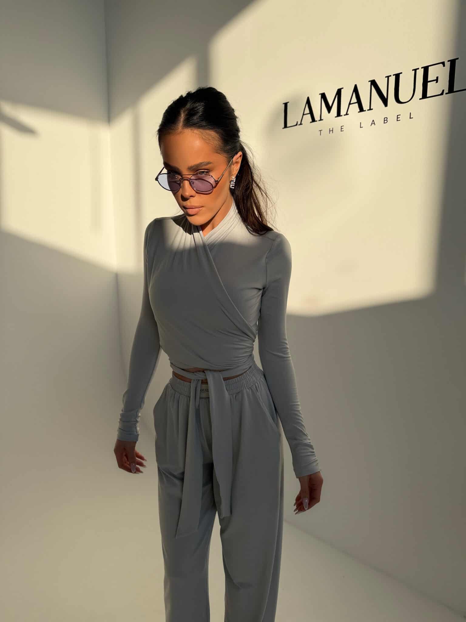 Miękki top z elastycznej wiskozy, który dopasowuje się do sylwetki i podkreśla jej linię. Krzyżowe wiązanie daje możliwość noszenia na dwa sposoby – blisko przy szyi lub z dekoltem w kształcie V. Rękawy z delikatnym marszczeniem dodają lekkości i kobiecego charakteru. Z boku wszyta subtelna metka lamanuel. Model, który łączy wygodę z efektem „wow” – idealny do stylizacji dziennych i wieczornych.Skład: 95% wiskoza 5% elastan