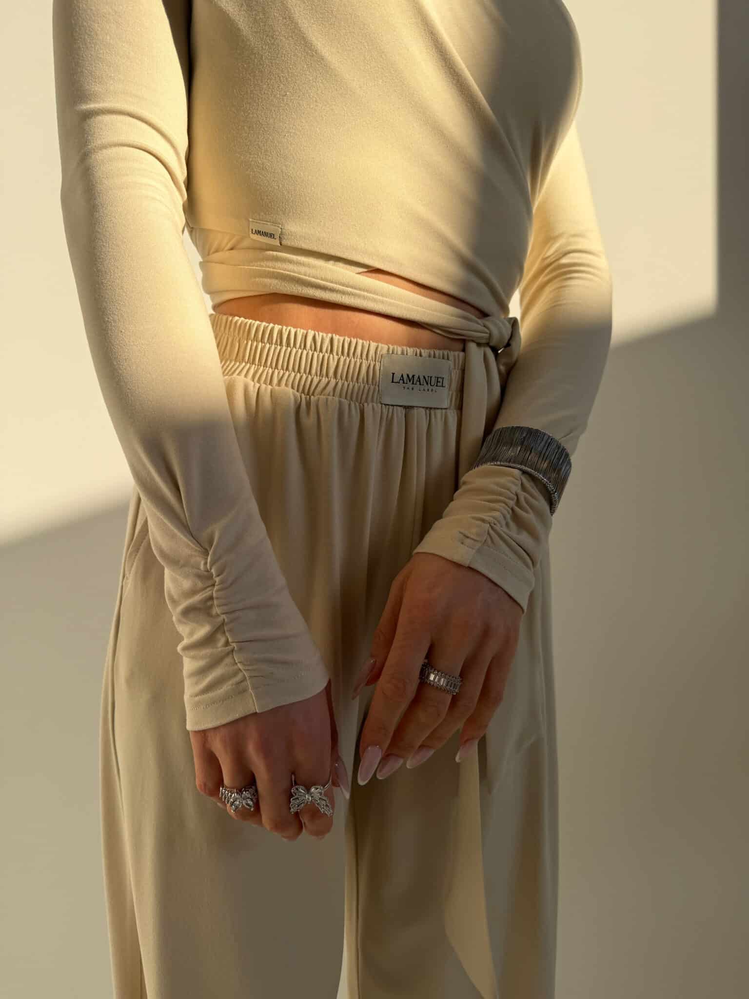 Miękki top z elastycznej wiskozy, który dopasowuje się do sylwetki i podkreśla jej linię. Krzyżowe wiązanie daje możliwość noszenia na dwa sposoby – blisko przy szyi lub z dekoltem w kształcie V. Rękawy z delikatnym marszczeniem dodają lekkości i kobiecego charakteru. Z boku wszyta subtelna metka lamanuel. Model, który łączy wygodę z efektem „wow” – idealny do stylizacji dziennych i wieczornych.Skład: 95% wiskoza 5% elastan