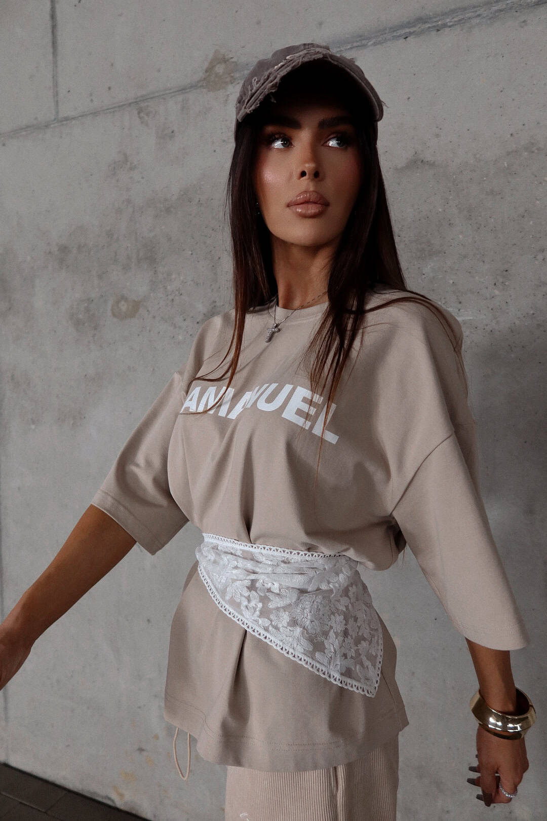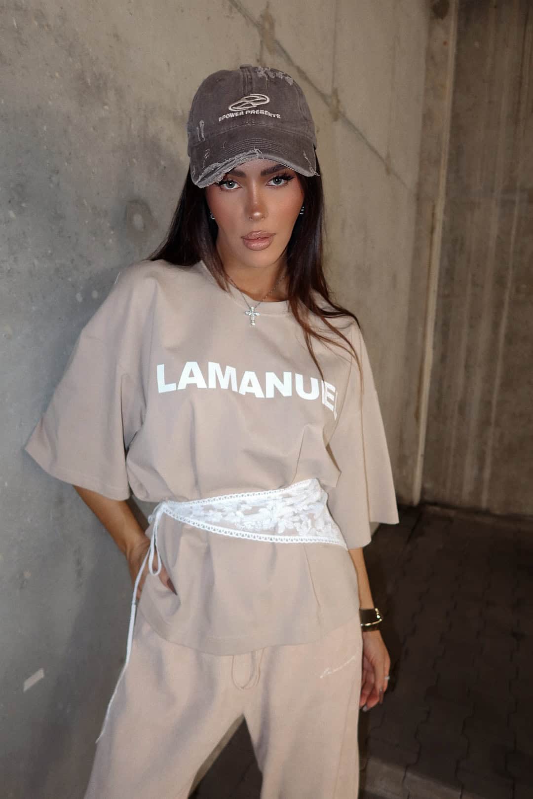 Oversize’owy T-shirt o luźnym kroju wykonany z wysokiej jakości bawełny, zapewniającej wygodę noszenia i swobodę ruchów. Prosty fason z lekko obniżoną linią ramion, który świetnie układa się na sylwetce i pasuje do różnych stylizacji – zarówno sportowych, jak i bardziej casualowych. Na przodzie nadrukowane logo LAMANUEL w kontrastowym wykończeniu, które przyciąga wzrok i nadaje charakteru. T-shirt sprawdzi się zarówno w zestawieniu z dresami, legginsami, jak i z jeansami czy szortami.Skład: 100% bawełna