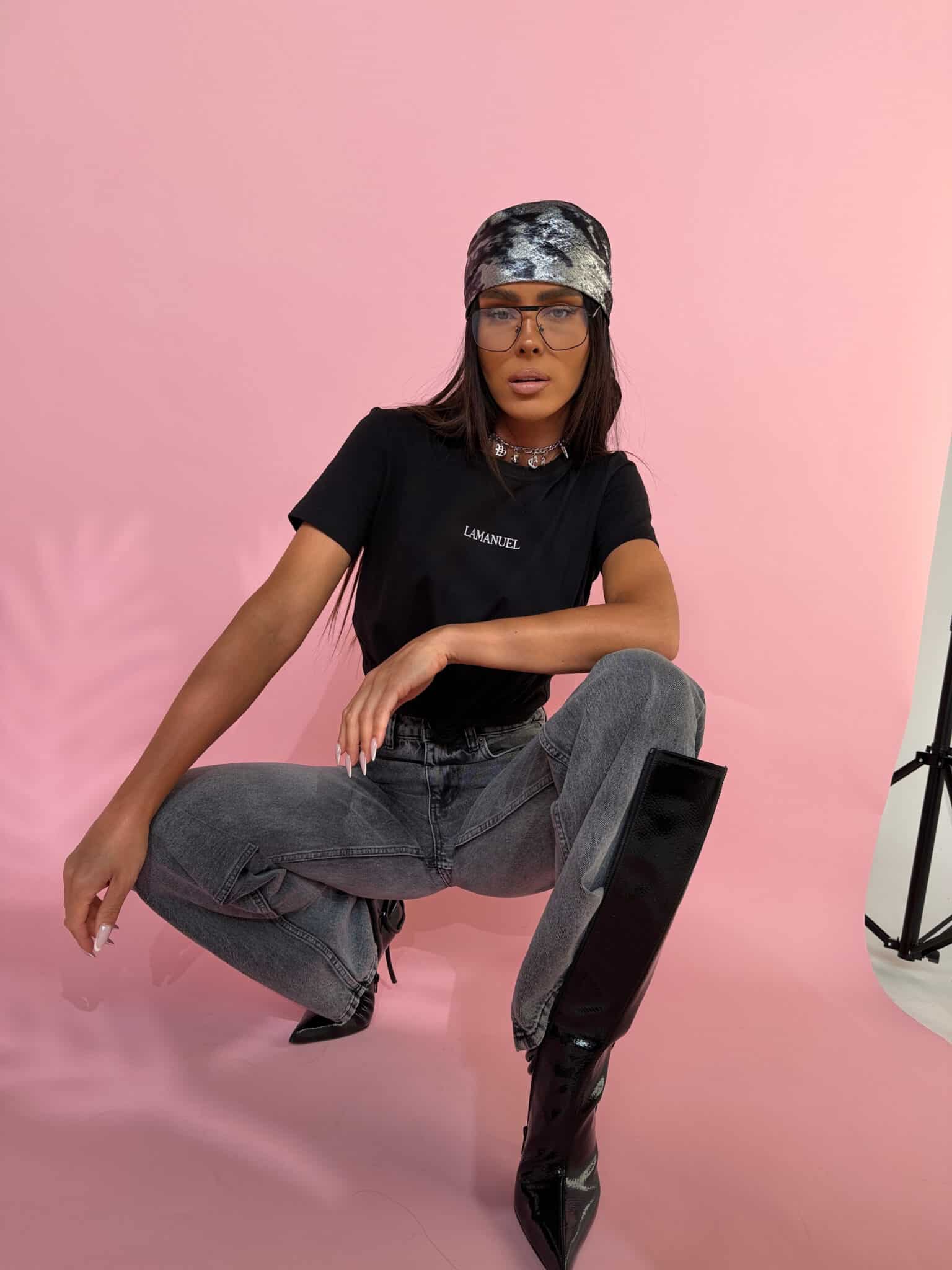 Klasyczny t-shirt o wydłużonym kroju, który daje pełną swobodę stylizacji. Uszyty z miękkiej, przyjemnej w dotyku dzianiny, która dobrze układa się na sylwetce i naturalnie pracuje w ruchu. Ma prostą, ponadczasową formę z subtelnym haftem na przodzie, dzięki czemu wygląda minimalistycznie, ale z charakterem. To model, który możesz nosić klasycznie w wersji dłuższej albo podkręcić – podwinąć i lekko podłożyć pod biustonosz, tworząc krótszą, bardziej dopasowaną formę. W zależności od tego, jak go ułożysz, zmienia swój klimat – od luźnego po bardziej kobiecy i podkreślający talię. Prosty, ale daje efekt.Skład: 100% bawełna